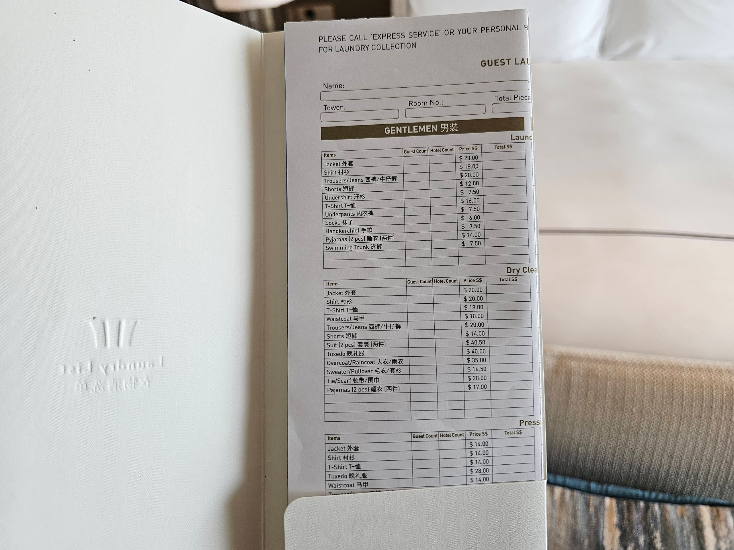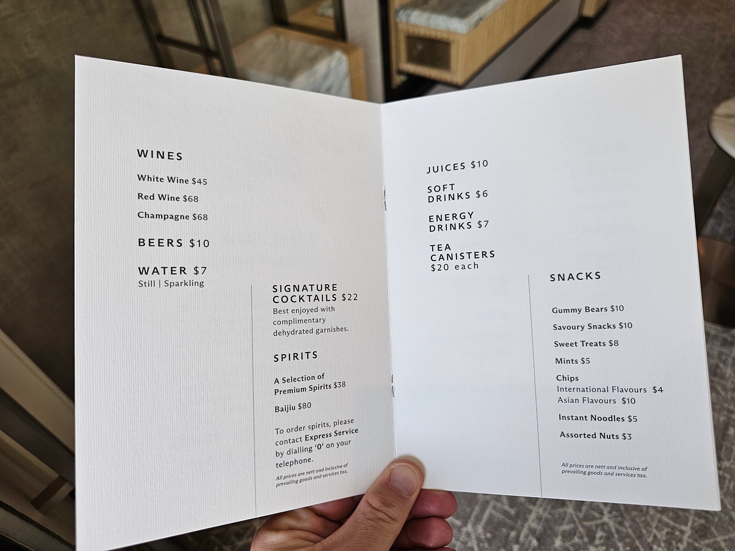Dessutom ingick en kredit på 100 sgd att spendera på utvalda barer och restauranger på hotellet.