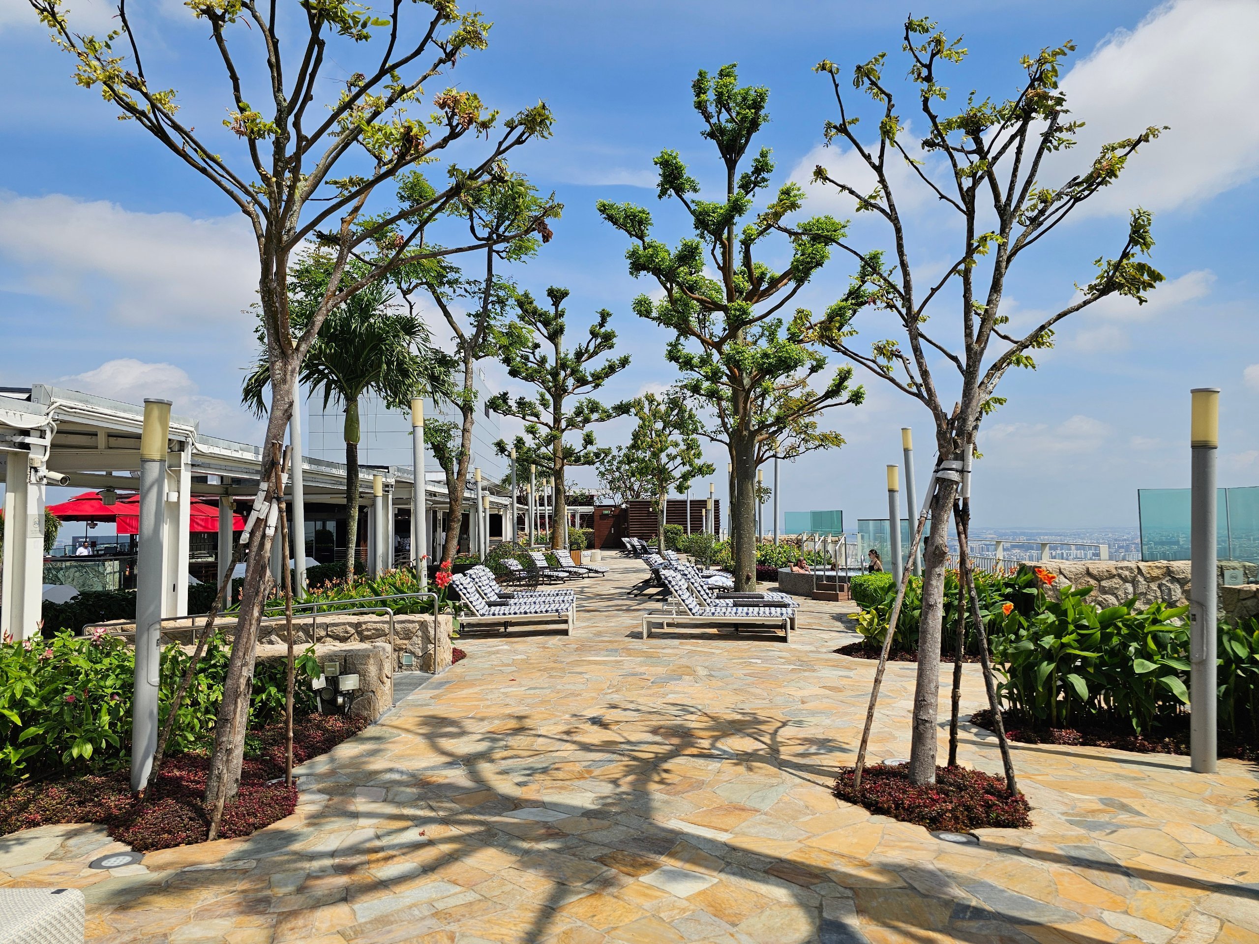 Solstolarna är också belägna på andra sidan taket där det inte finns någon pool och det är tystare.