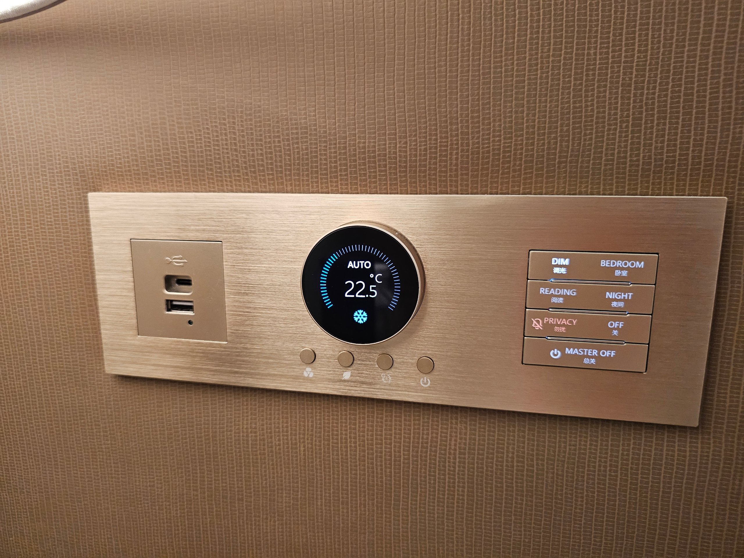 - säng av god kvalitet och tyst luftkonditionering (du kan styra luftkonditioneringen från sängen, vilket inte riktigt är standard)