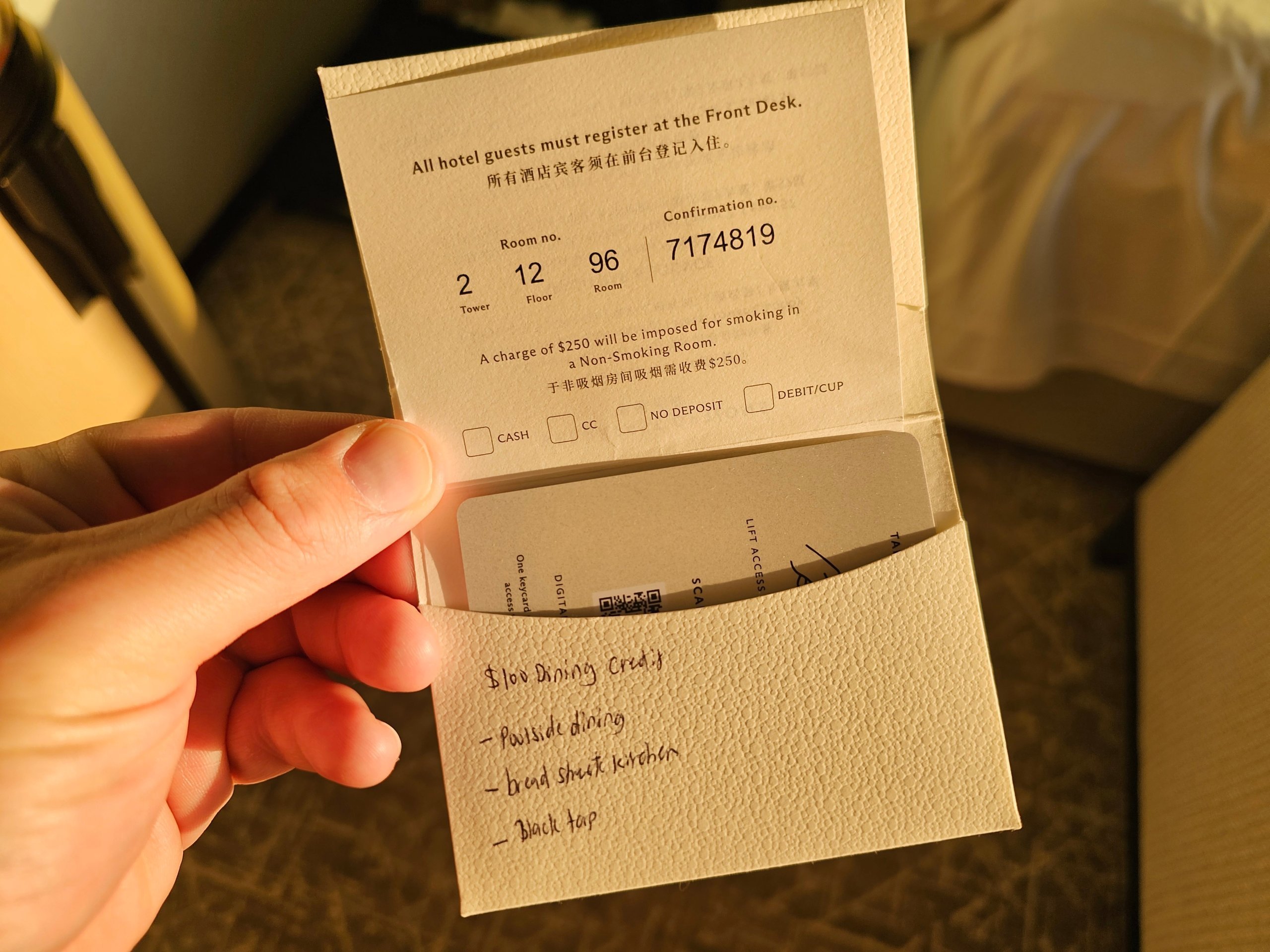 Om du spenderade pengar på restauranger på din rumsnota kommer det automatiskt att debiteras ditt kort efter utcheckning.
