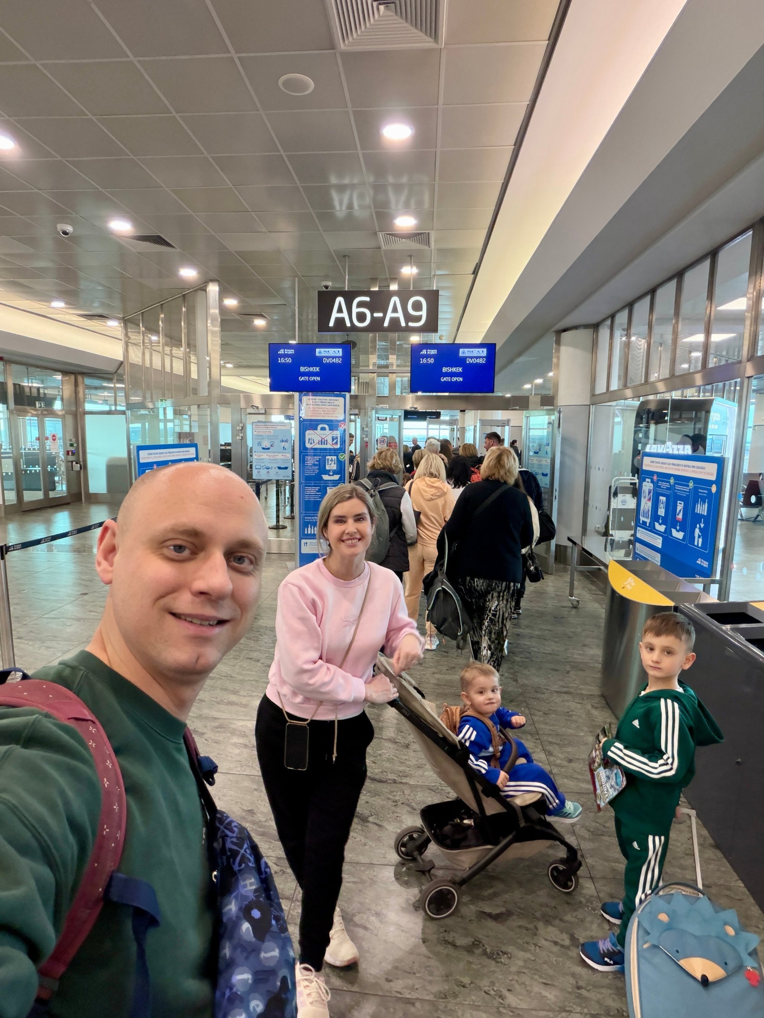Vi anlände traditionellt till flygplatsen med optimal förvarning, cirka 1 timme och 45 minuter före avgång.
