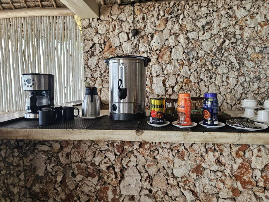Ofiltrerat droppkaffe finns att tillgå, liksom te i påse.