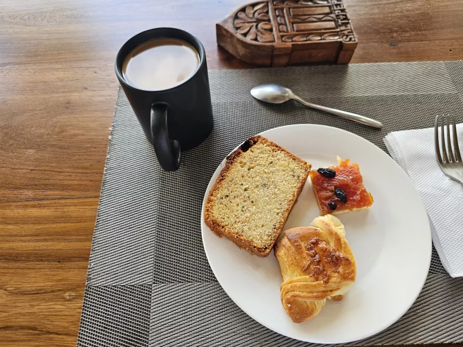I övrigt erbjuds yoghurt, två till tre sorters frukt, söta bakverk, rostat bröd och alltid två sorters juice + vatten.