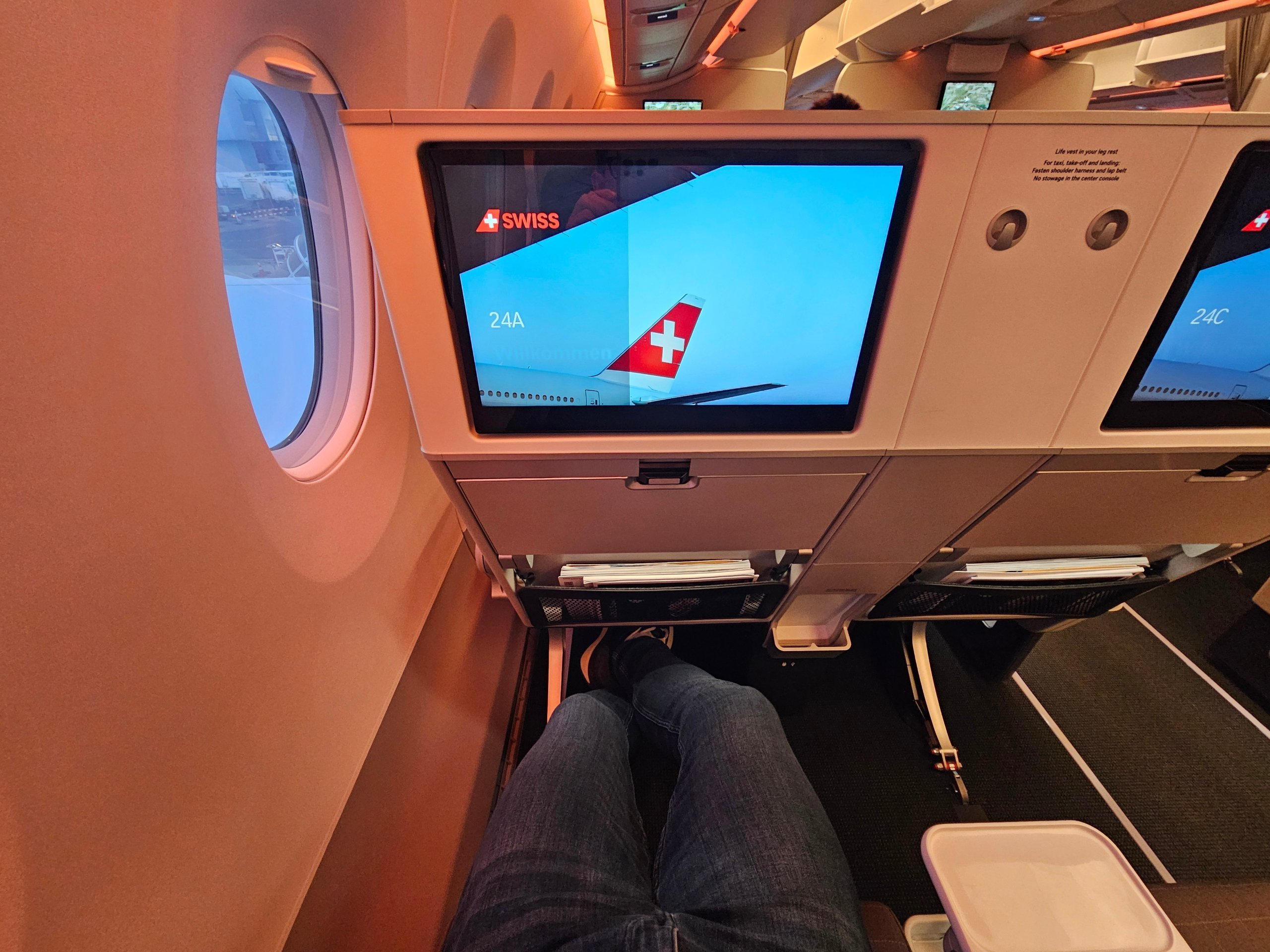 På en långdistansflygning skulle jag kunna tänka mig det utan att tveka. På rutten Prag-Zürich njöt jag snarare av känslan av utrymme - och det faktum att jag satt i något som man praktiskt taget inte upplever på en vanlig europeisk flygning.