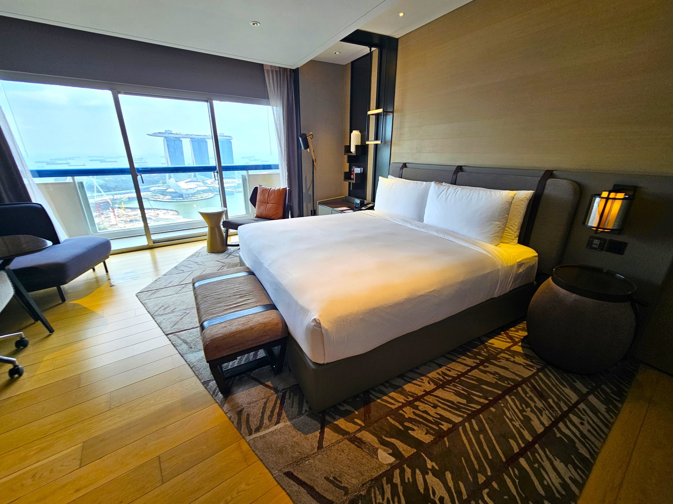 Vi valde hotellet för vår första natt i Singapore - för att jag älskar varumärket, och också för att utsikten skulle förbereda oss för resans höjdpunkt: en vistelse på ikoniska Marina Bay Sands.