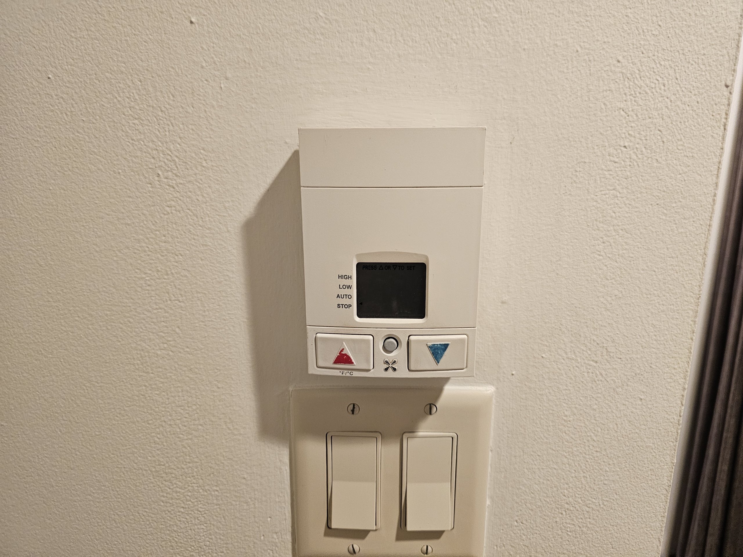 Rummet är utrustat med en kraftfull och tyst luftkonditionering, men den kan inte styras från sängen utan endast från kontrollpanelen i korridoren.