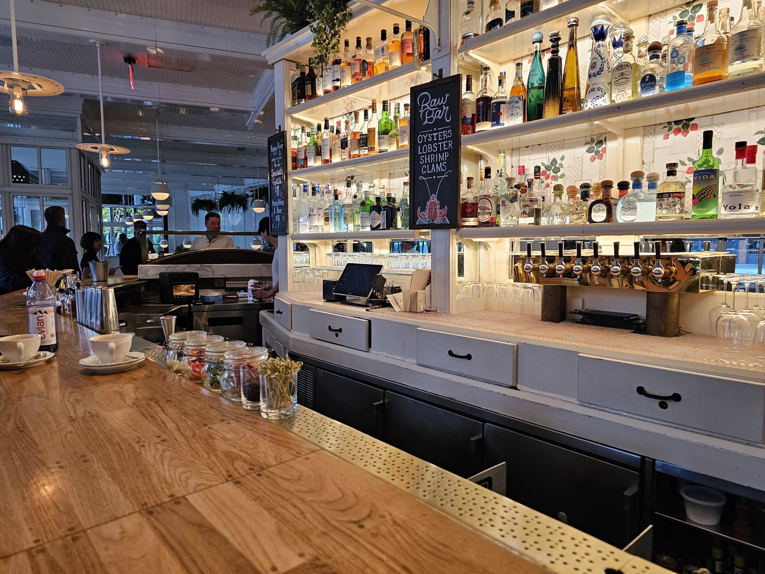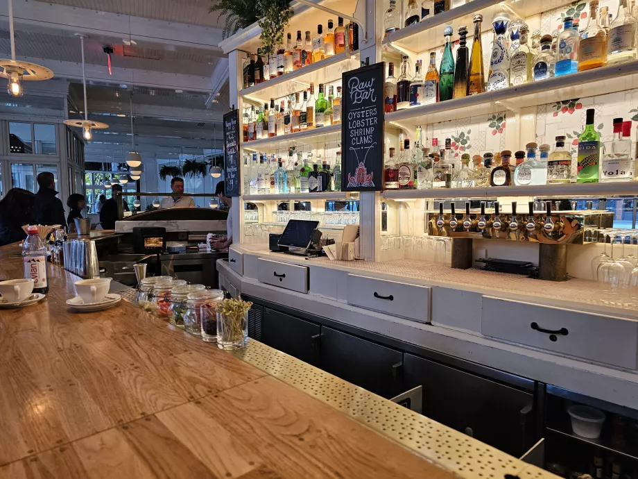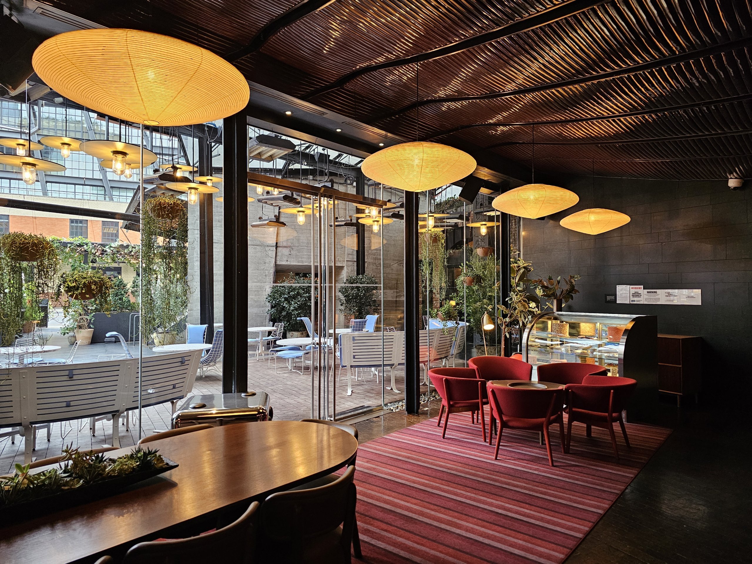 Restaurangen har inomhusutrymmen och en stor uteservering direkt under High Line.