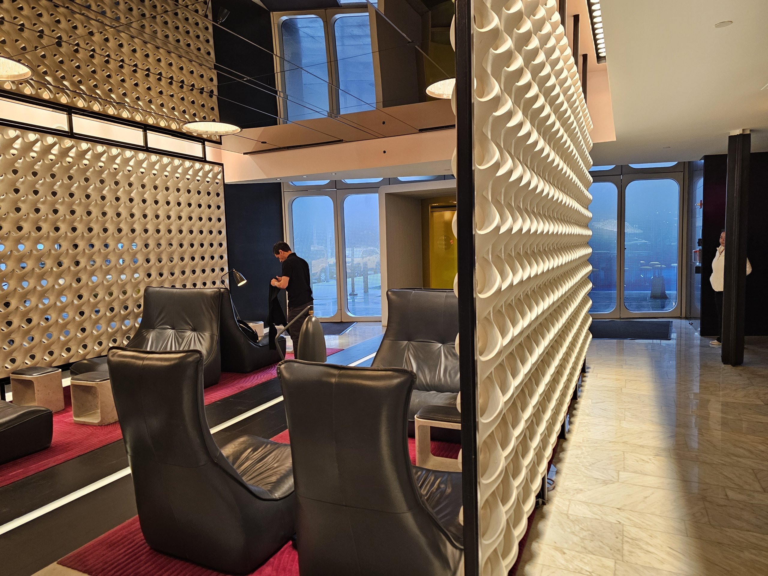 Incheckningen går mycket snabbt och receptionen imponerar redan med sin intressanta design.