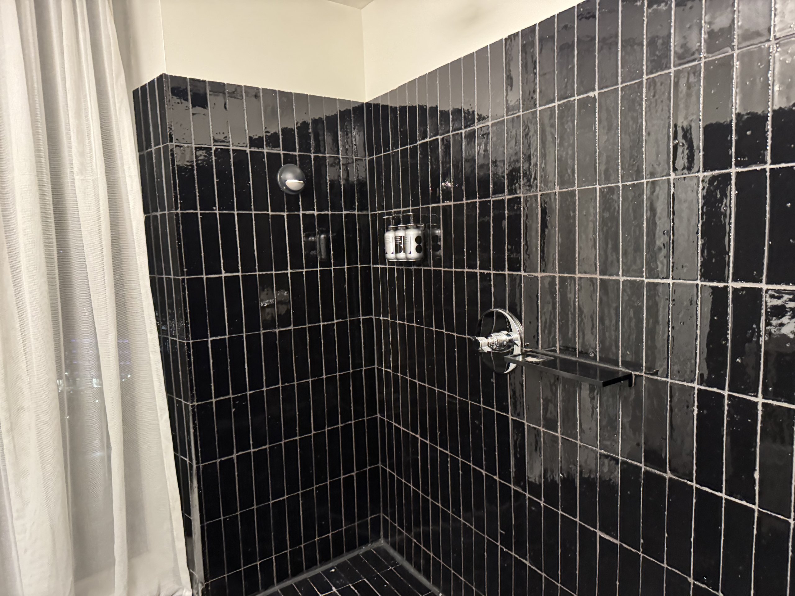 Duschen är bara överliggande och det är ganska svårt att reglera vattentemperaturen.