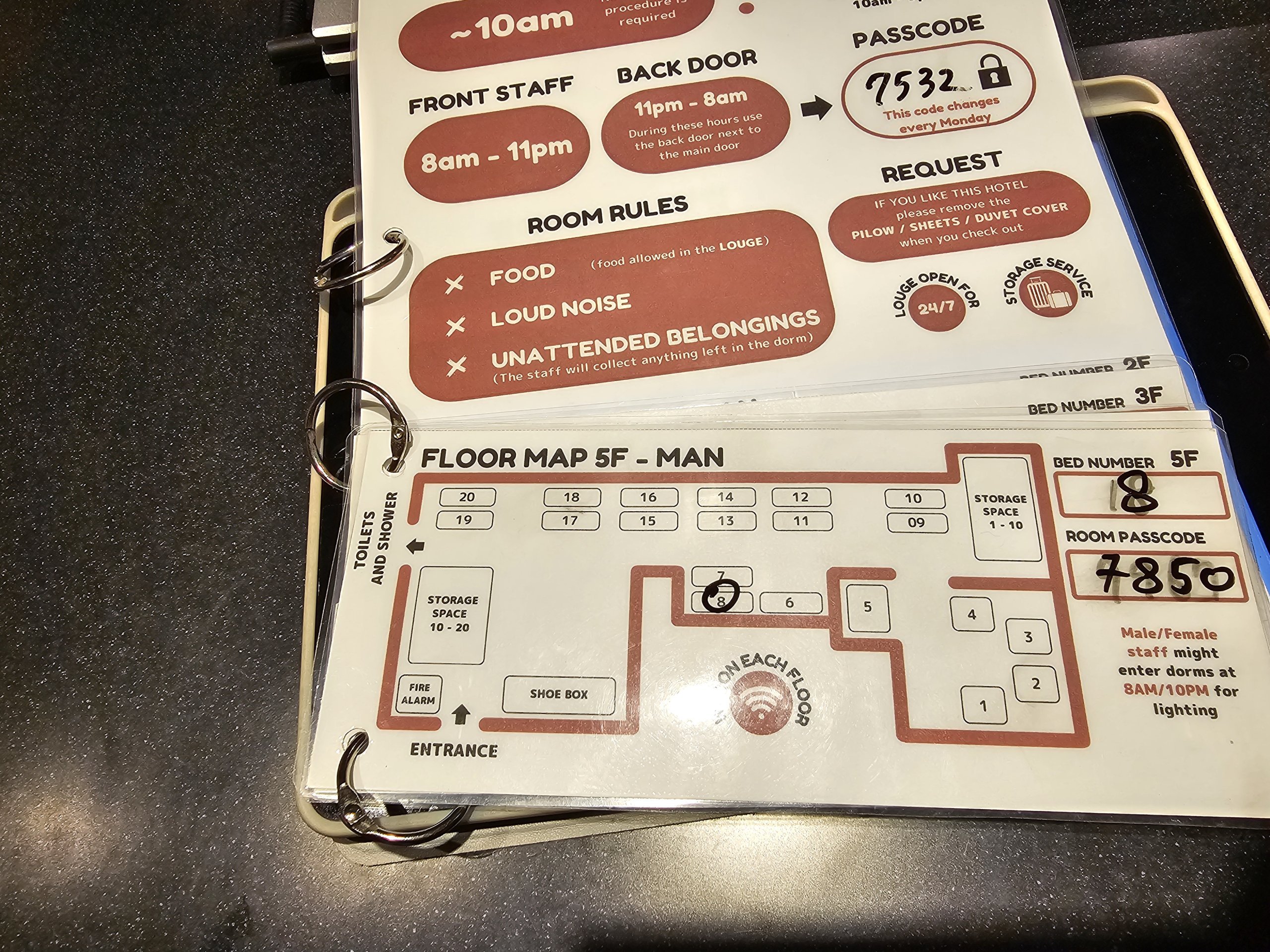 Jag har kapsel nummer 8, vilket är den översta våningssängen. Jag har inget emot det, men om du inte gillar att klättra på stegar rekommenderar jag att du när du bokar via booking.com skriver i din förfrågan att du vill ha den nedre kapseln.