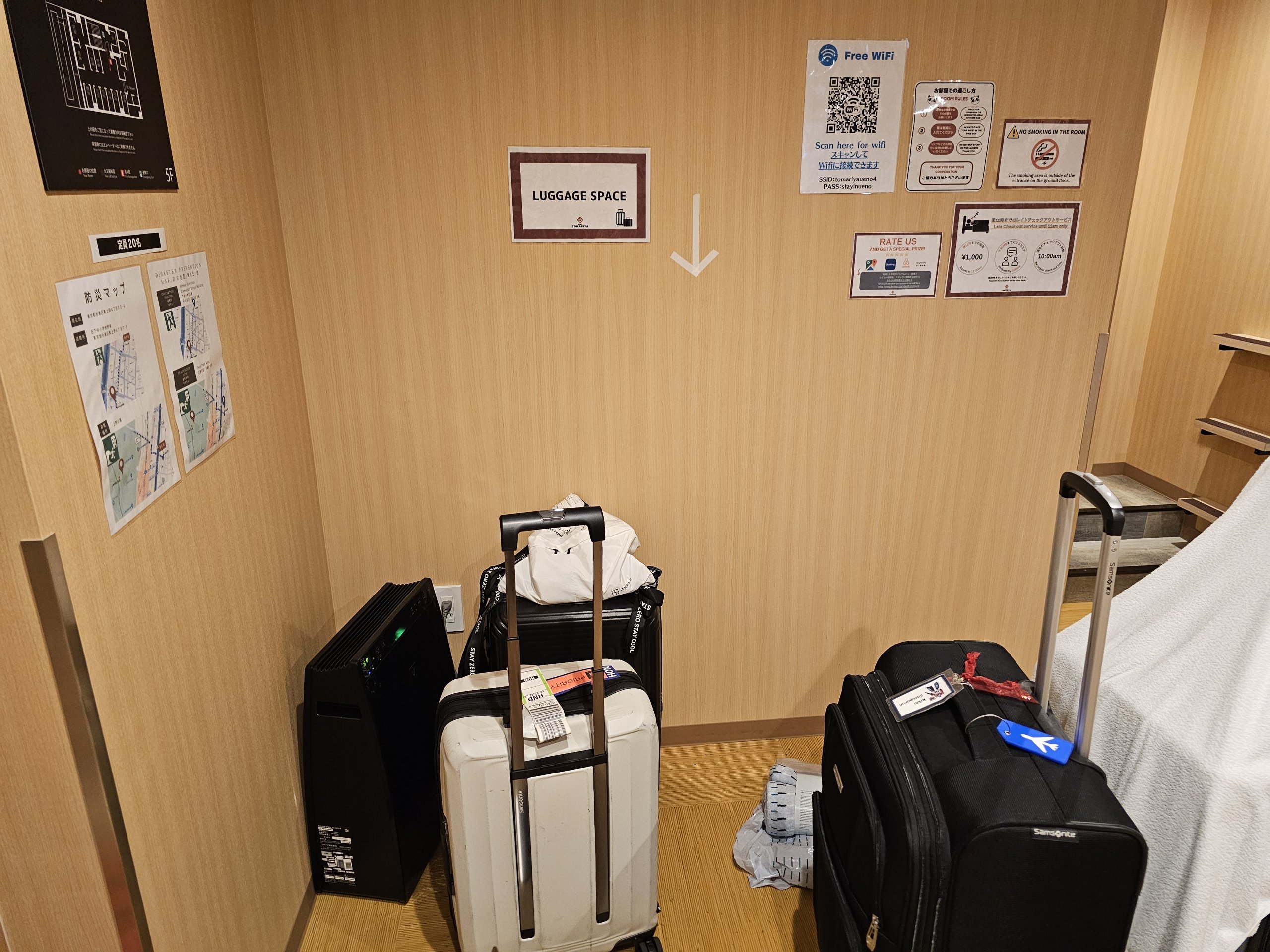 Incheckningen är inte förrän kl. 15.00. Jag förväntar mig inte några extra tjänster från ett kapselhotell utan kostnad, vilket gör det ännu mer positivt överraskande att kunna förvara mitt bagage gratis.