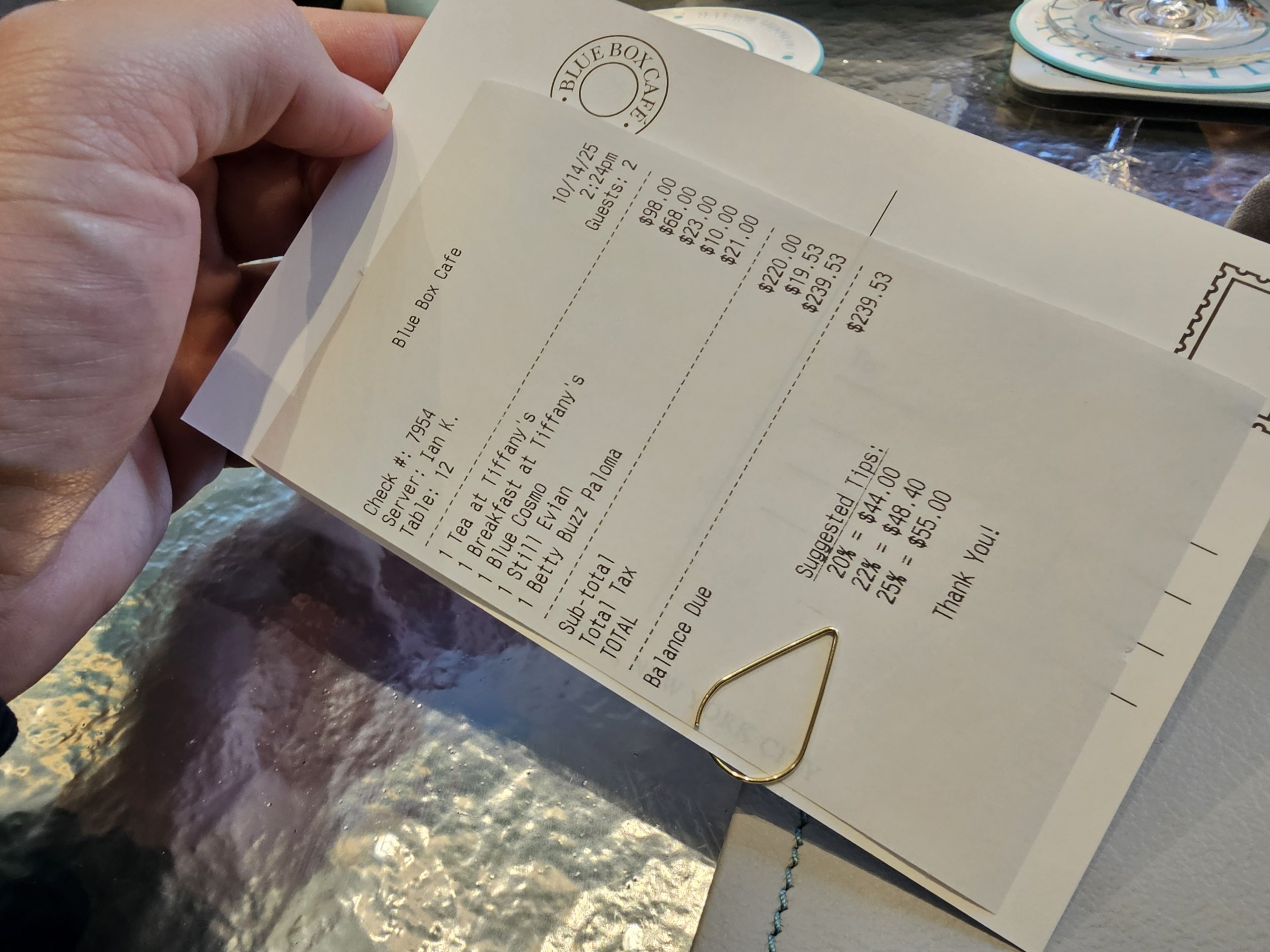 Du hittar Blue Box Café på 5th Avenue bara några steg från det ikoniska Plaza Hotel, där vi bodde och skrev en ärlig recension.