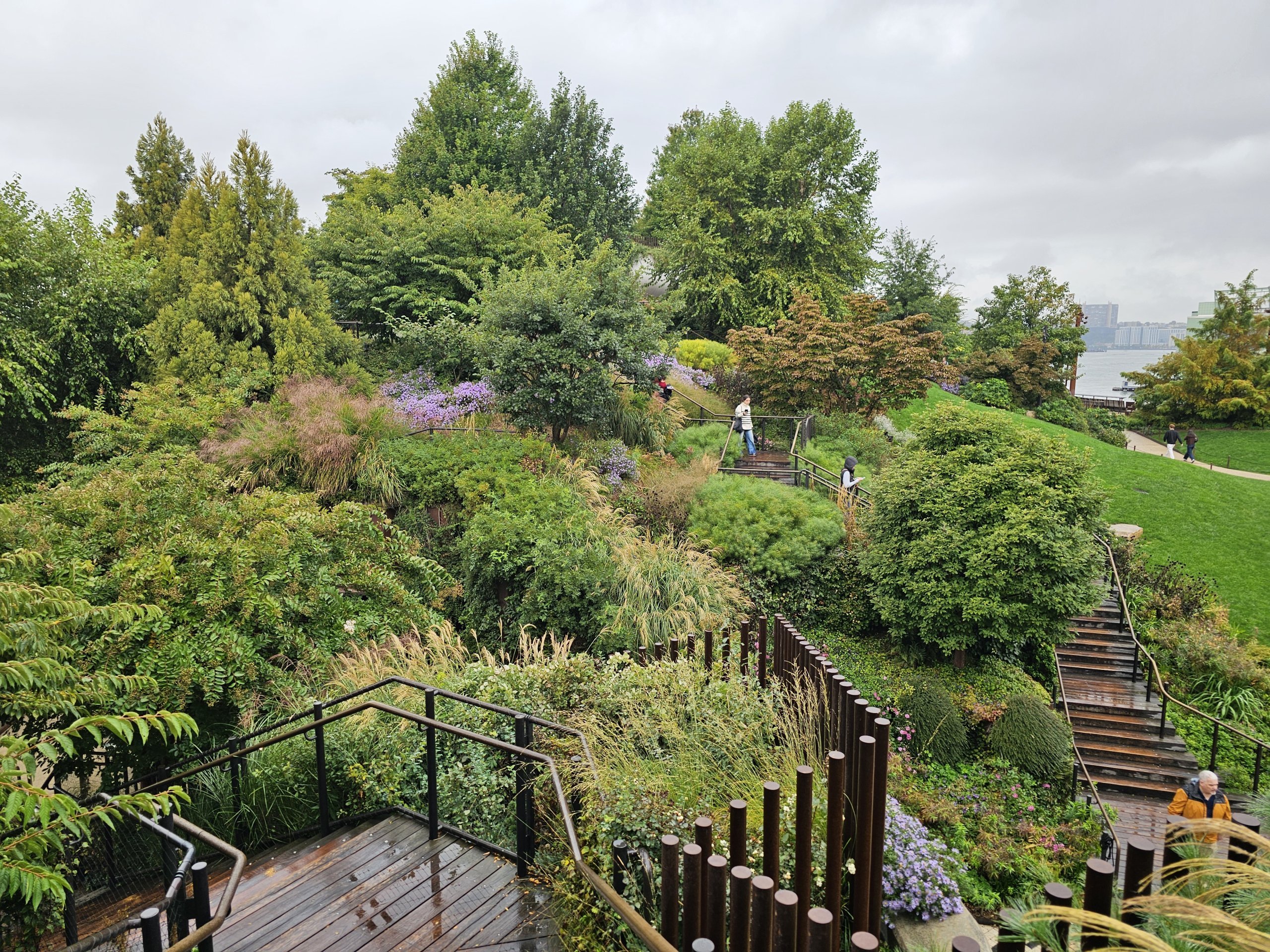 En stor del av Little Island täcks av en vackert anlagd och vildvuxen park med många blomsterrabatter, träd och bänkar.