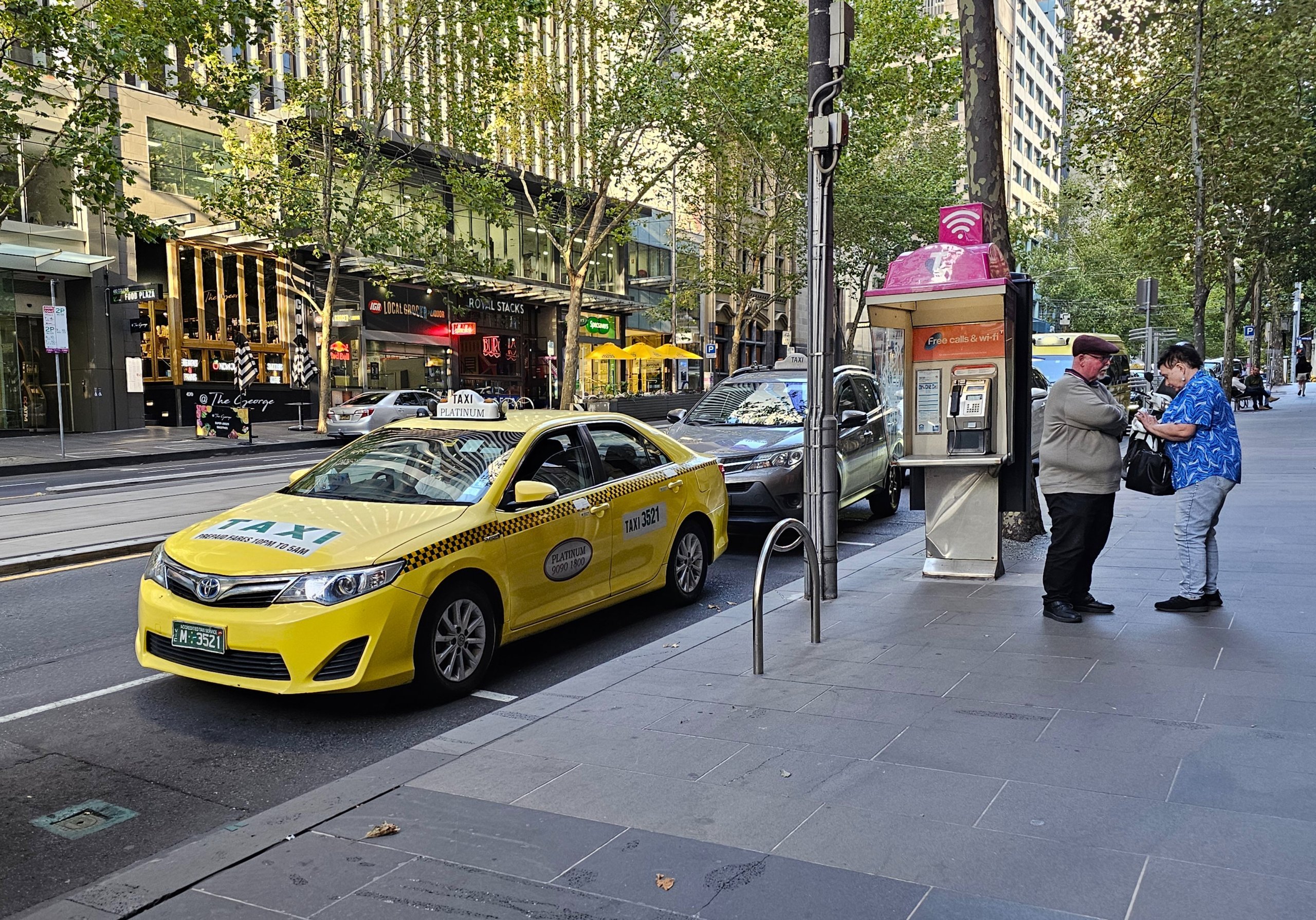 Det finns många taxibilar på Melbournes gator, men det finns relativt få utanför stadskärnan och du kan inte räkna med att en taxi stannar dig genom att vinka på gatan.