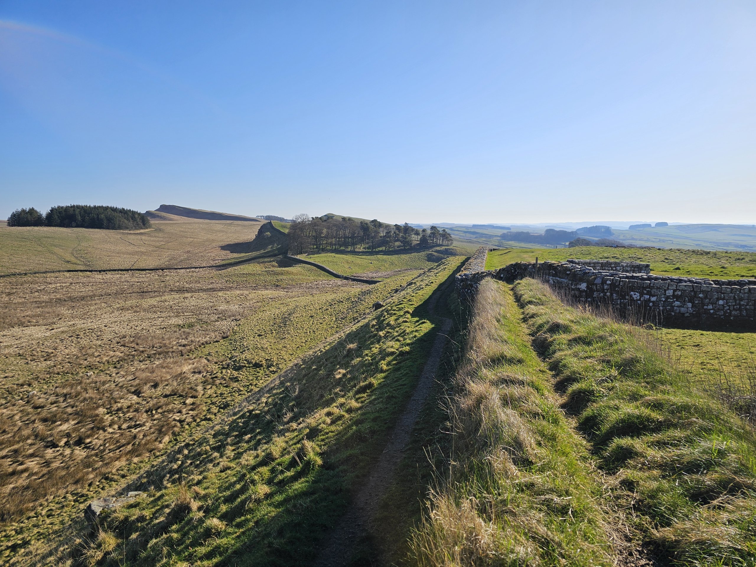 Eftersom Hadrianus mur går på sin högsta punkt i den här delen har man en hisnande och vidsträckt utsikt över slätterna i norra England.