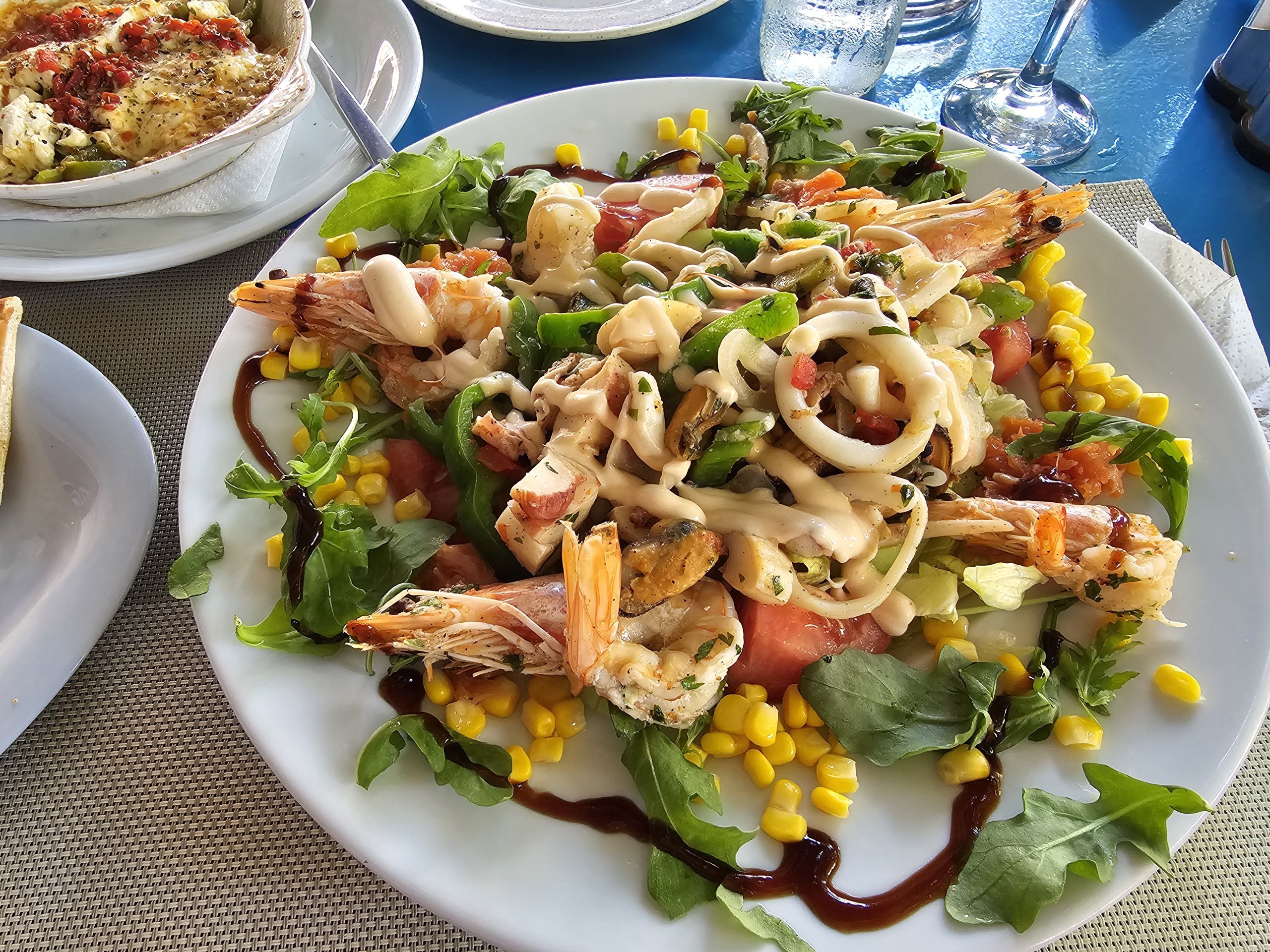 Fisk ochskaldjur - förutom fisk erbjuder naturligtvis alla restauranger rätter (oftast sallader) med andra skaldjur som musslor, räkor och bläckfisk.