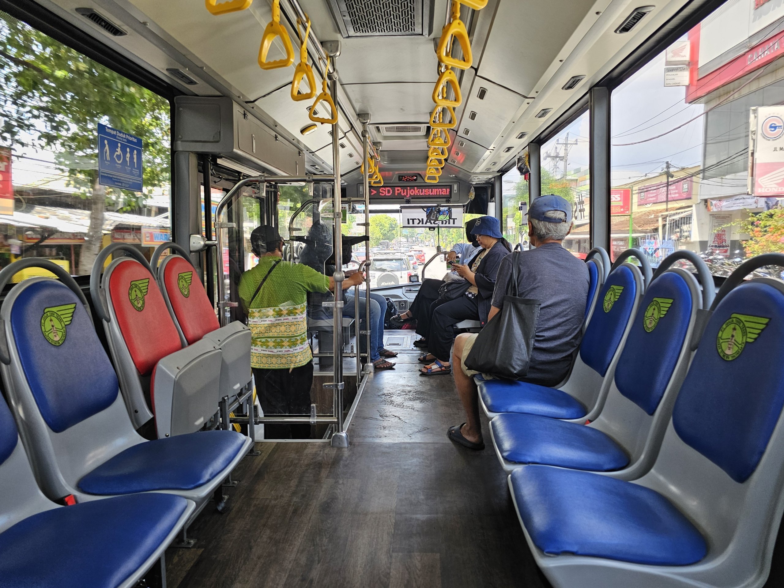 Bussarna är luftkonditionerade, säkra och hela systemet är ganska tydligt med kartor vid varje hållplats och en tydlig karta som du kan ladda ner på din mobil på den här adressen: dishub.jogjaprov.go.id.