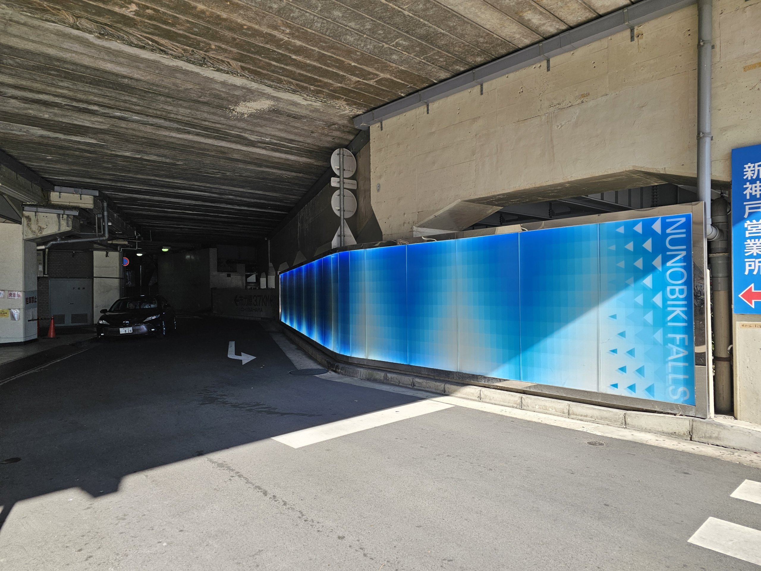 Du måste först passera genom undergången under stationen, som är markerad med blått och där det står "Nunabiki Falls".