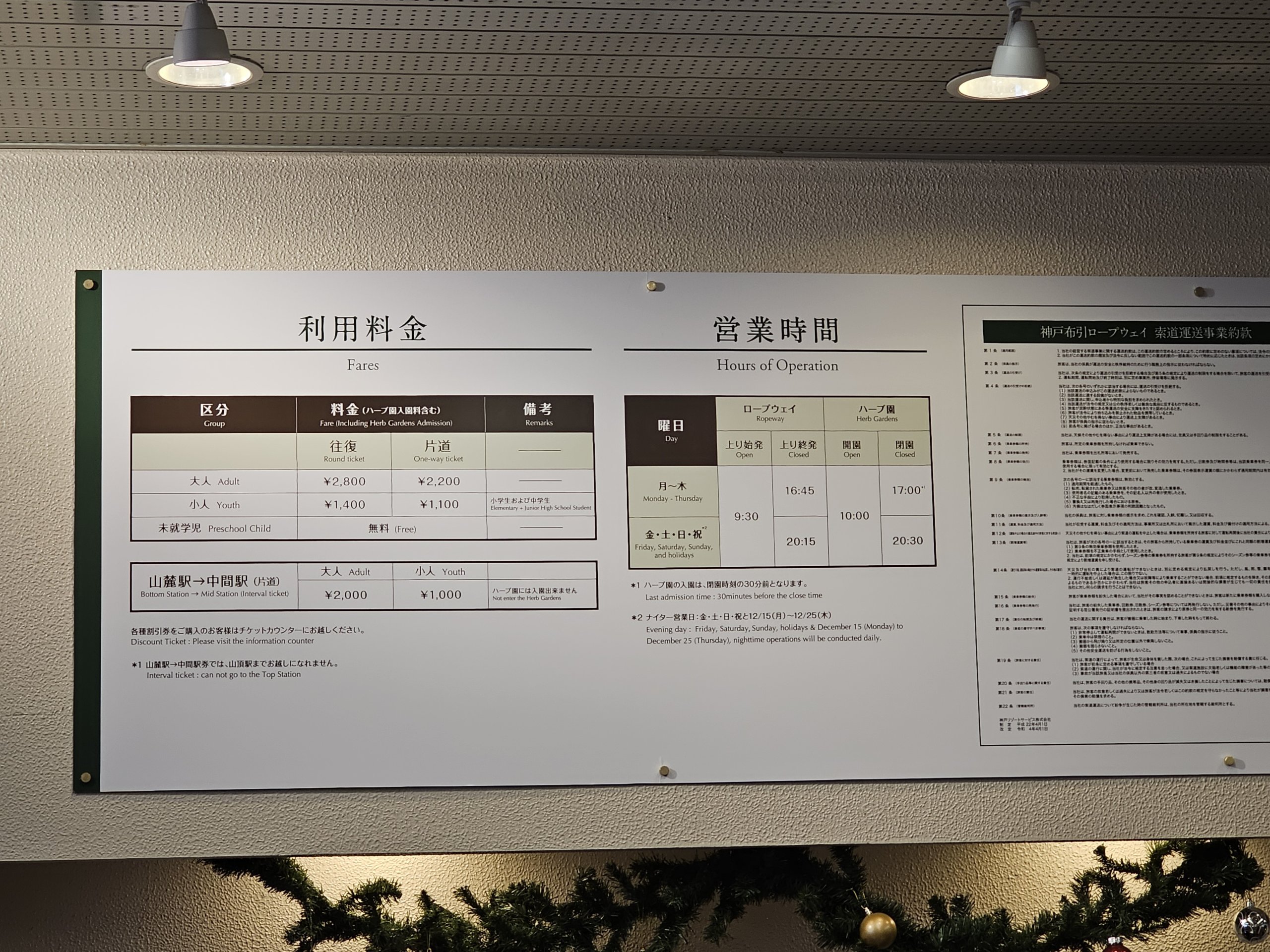 Detaljerad och aktuell information finns på den officiella webbplatsen: kobeherb.com/sv/hours-of-operation-and-fares.