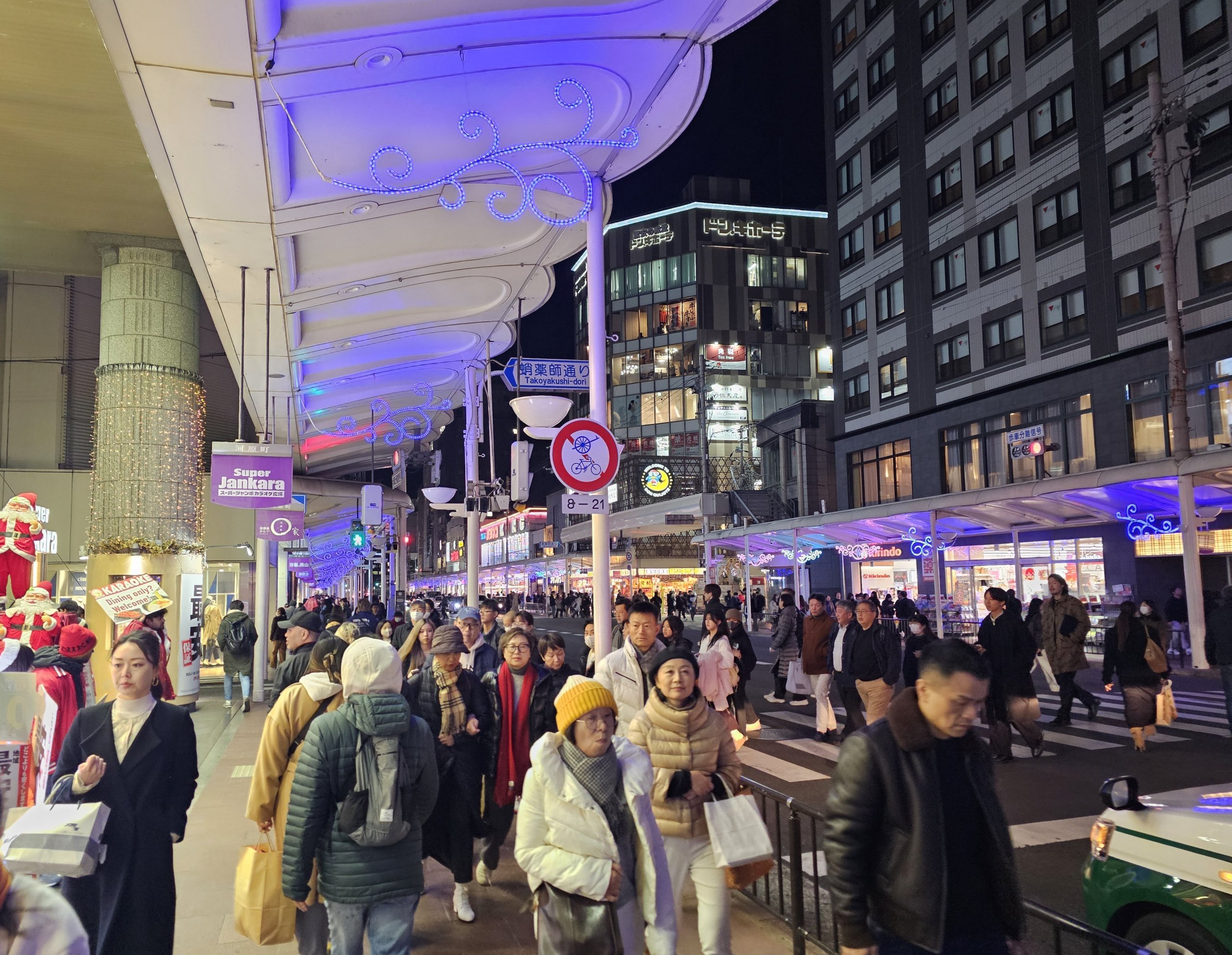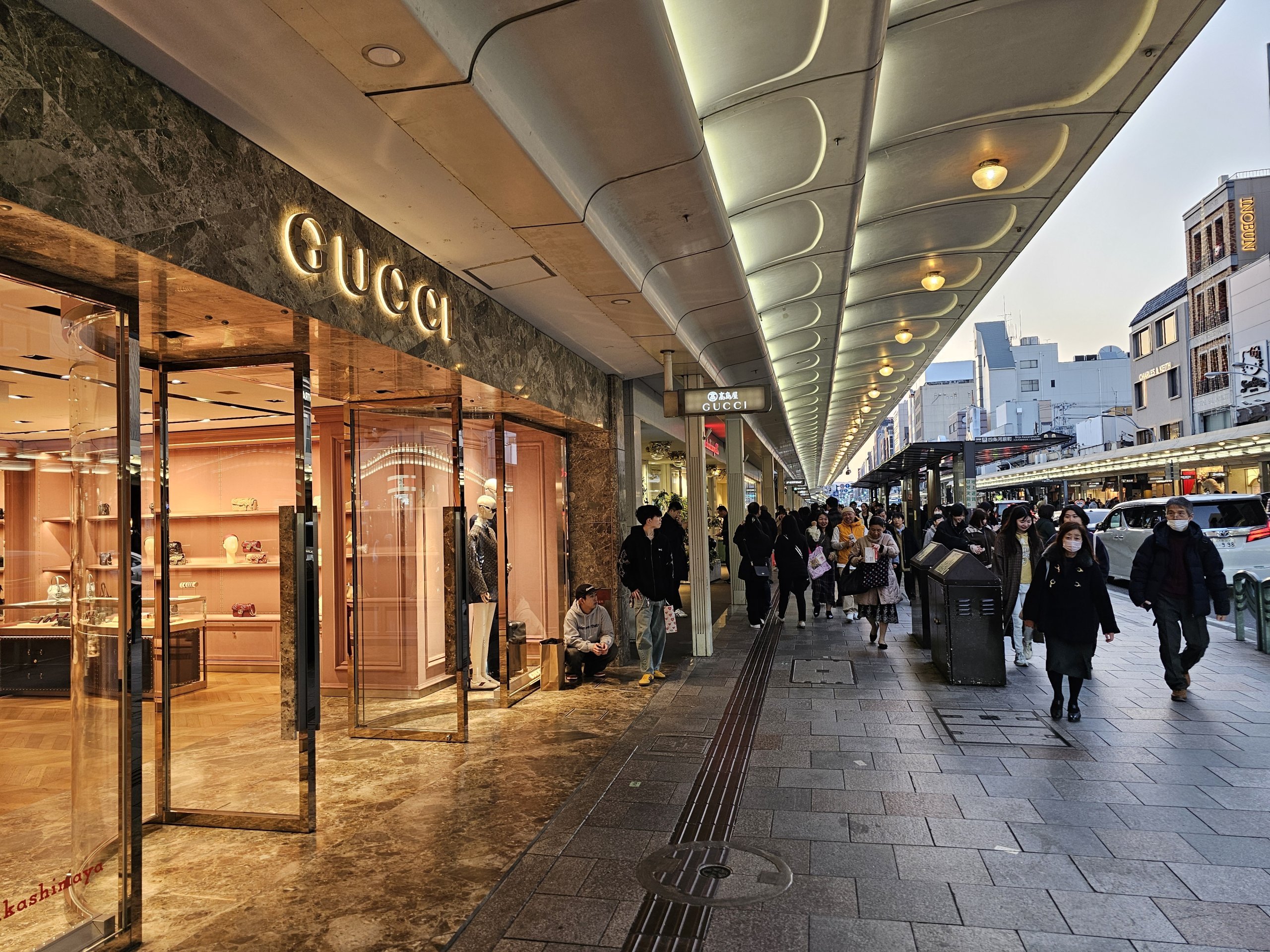 Den mest trafikerade platsen är korsningen Shijo-Kawaramachi, som är en av de livligaste platserna i staden.