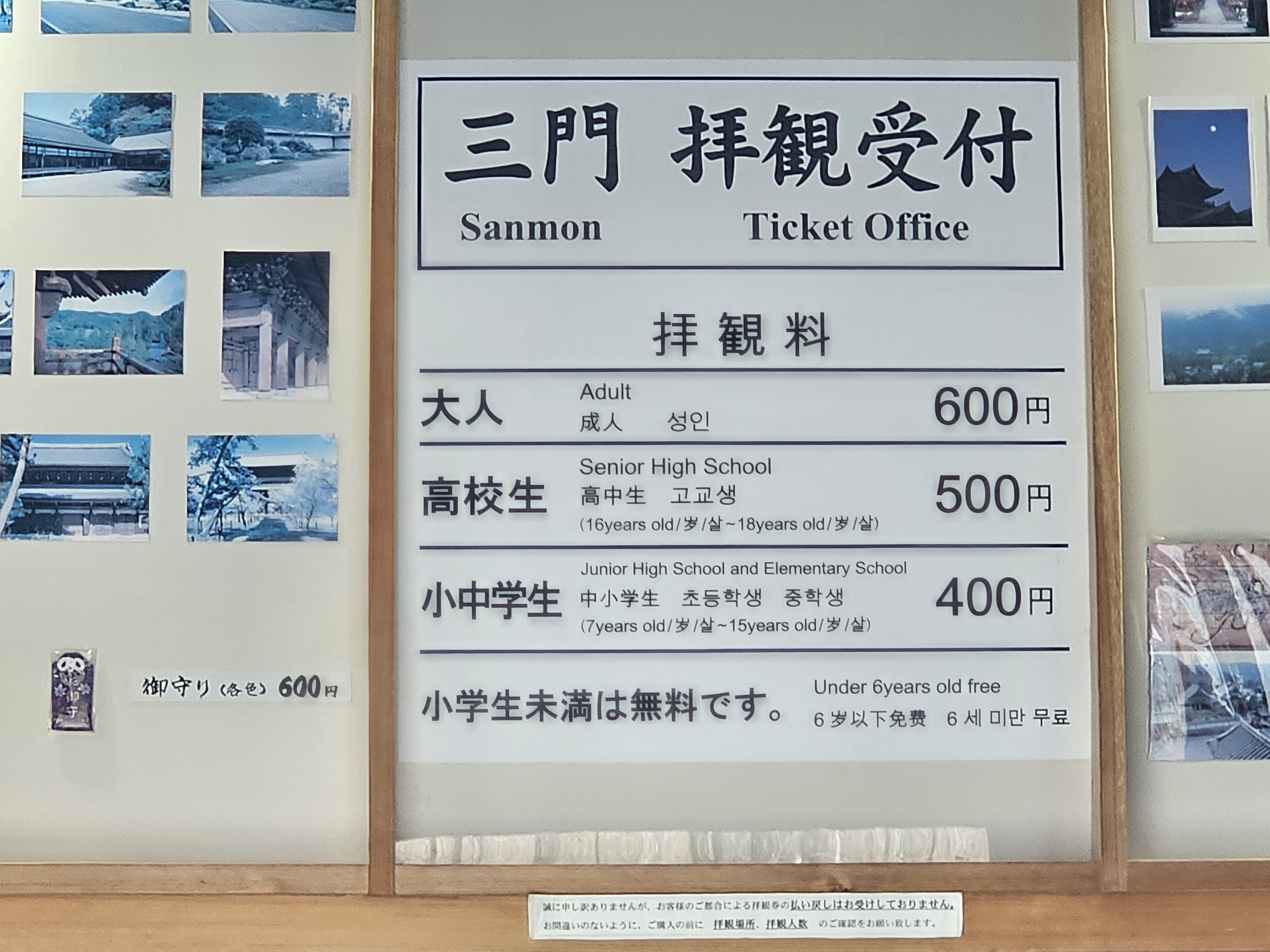 Sanmon Main Gate är en av de mest imponerande strukturerna i Kyoto. För en avgift på 600 jpy (endast kontanter) kan du klättra upp till toppen och få en utsikt över hela området och de omgivande kullarna.