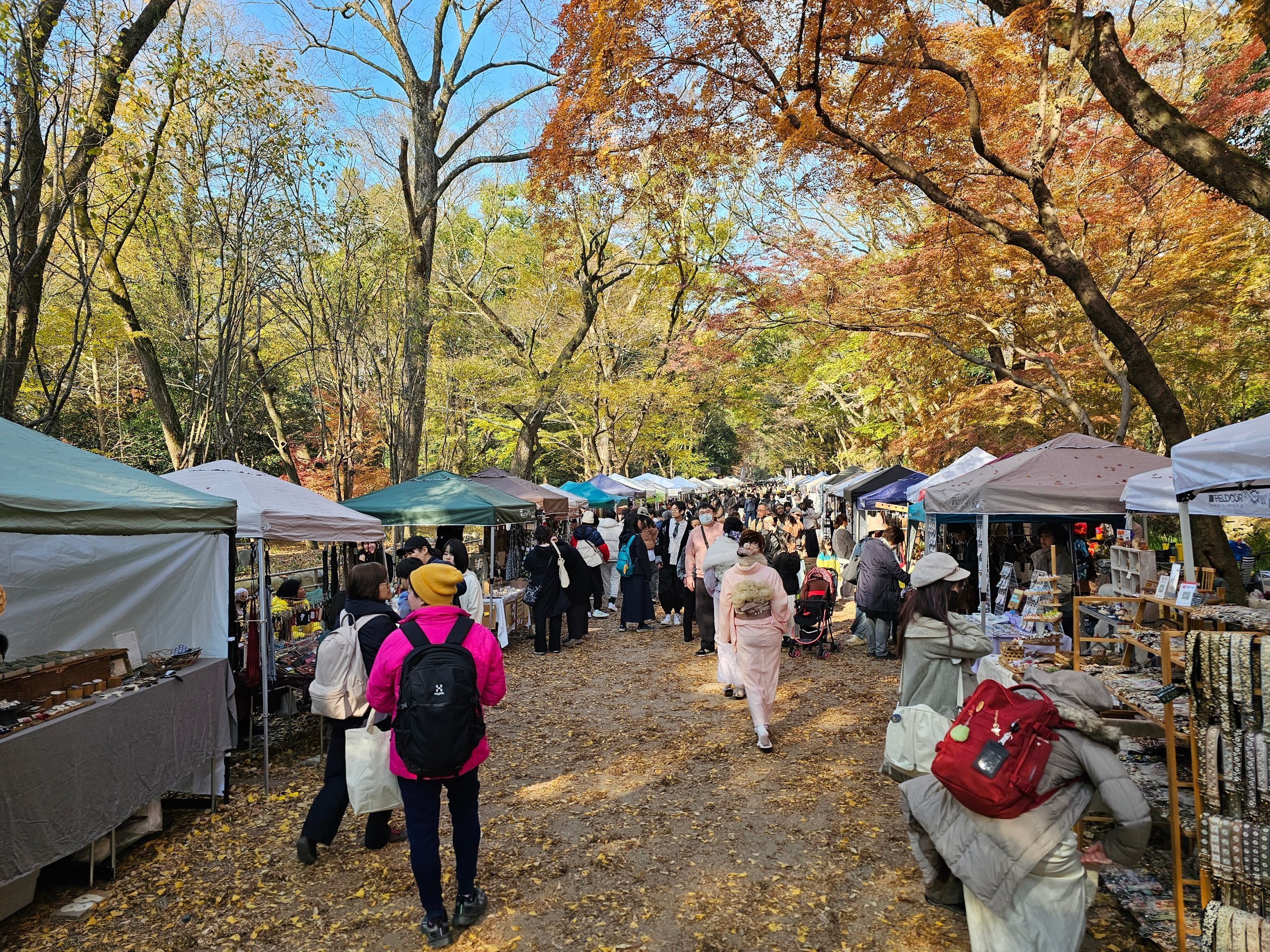 Genom Tadasu no Mori-skogen går ett promenadstråk fullt av souvenirstånd.