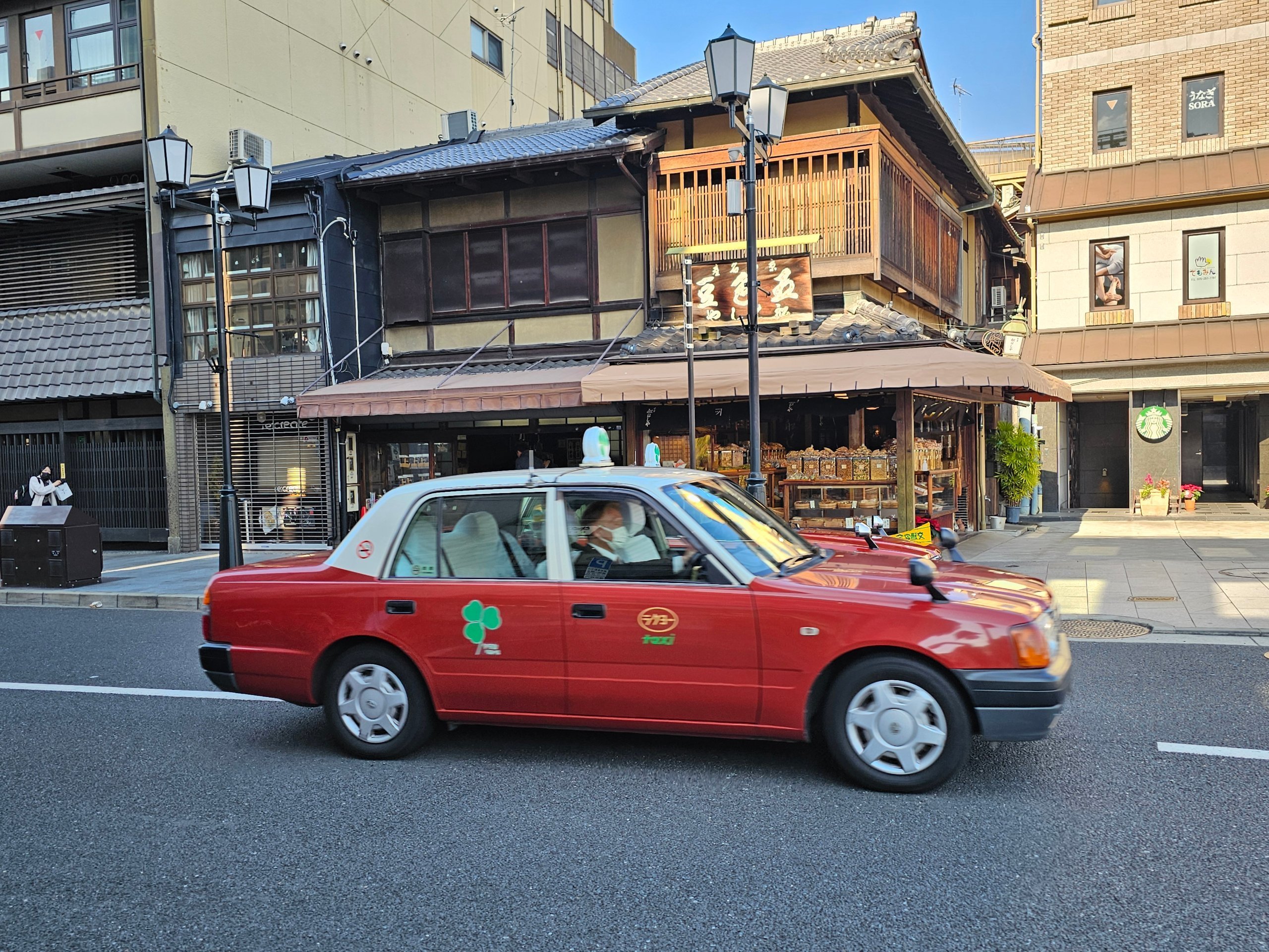 Taxibilar är mycket vanliga i Kyoto och förvånansvärt ofta rimligt dyra.