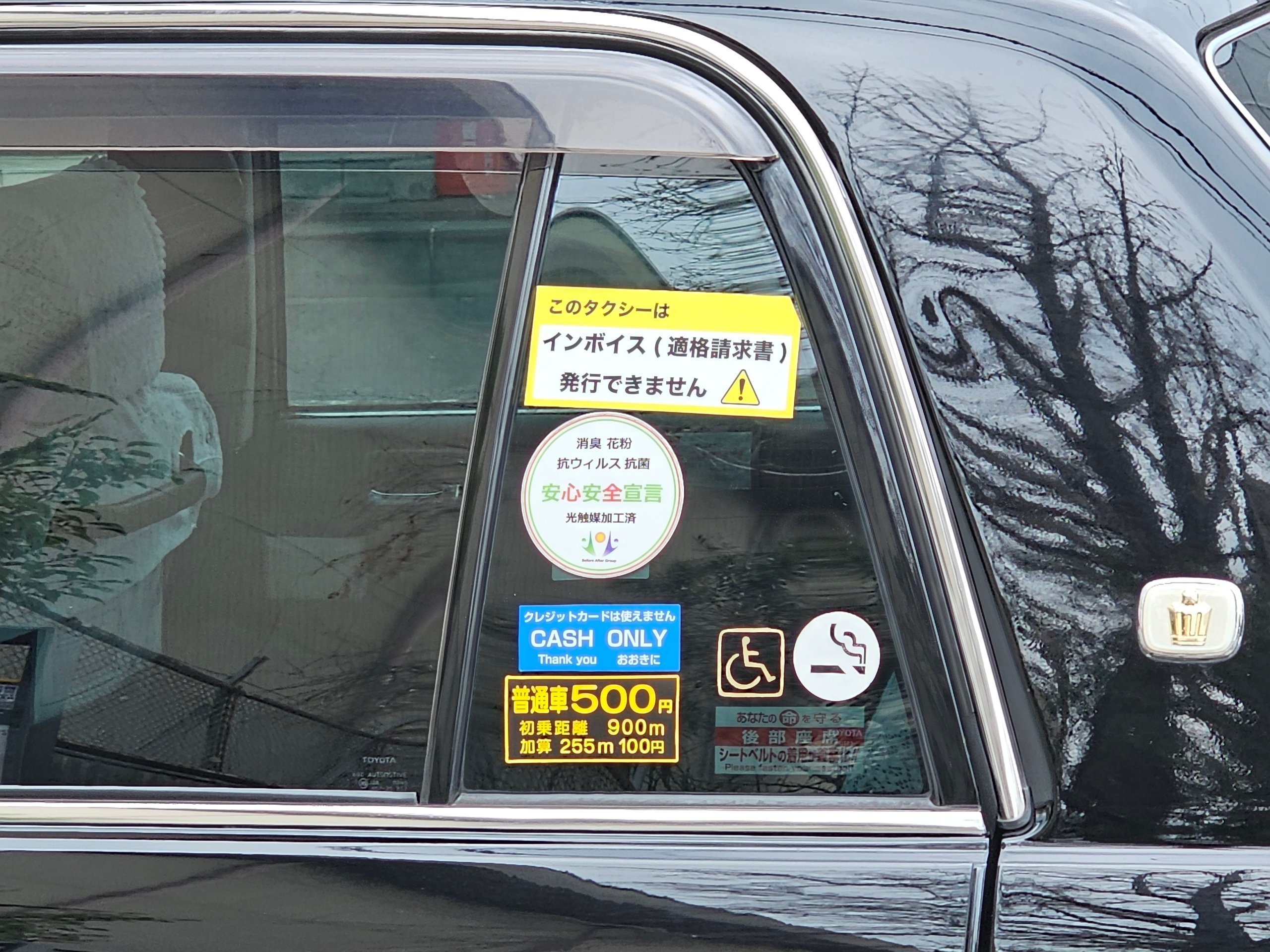 Taxi kan oftast betalas kontant och många taxibilar accepterar även vanliga Visa-, Mastercad- eller American Express-kort eller japanska transportkort (Icoca, Suica m.fl.). Kortbetalning är dock inte alltid regel.