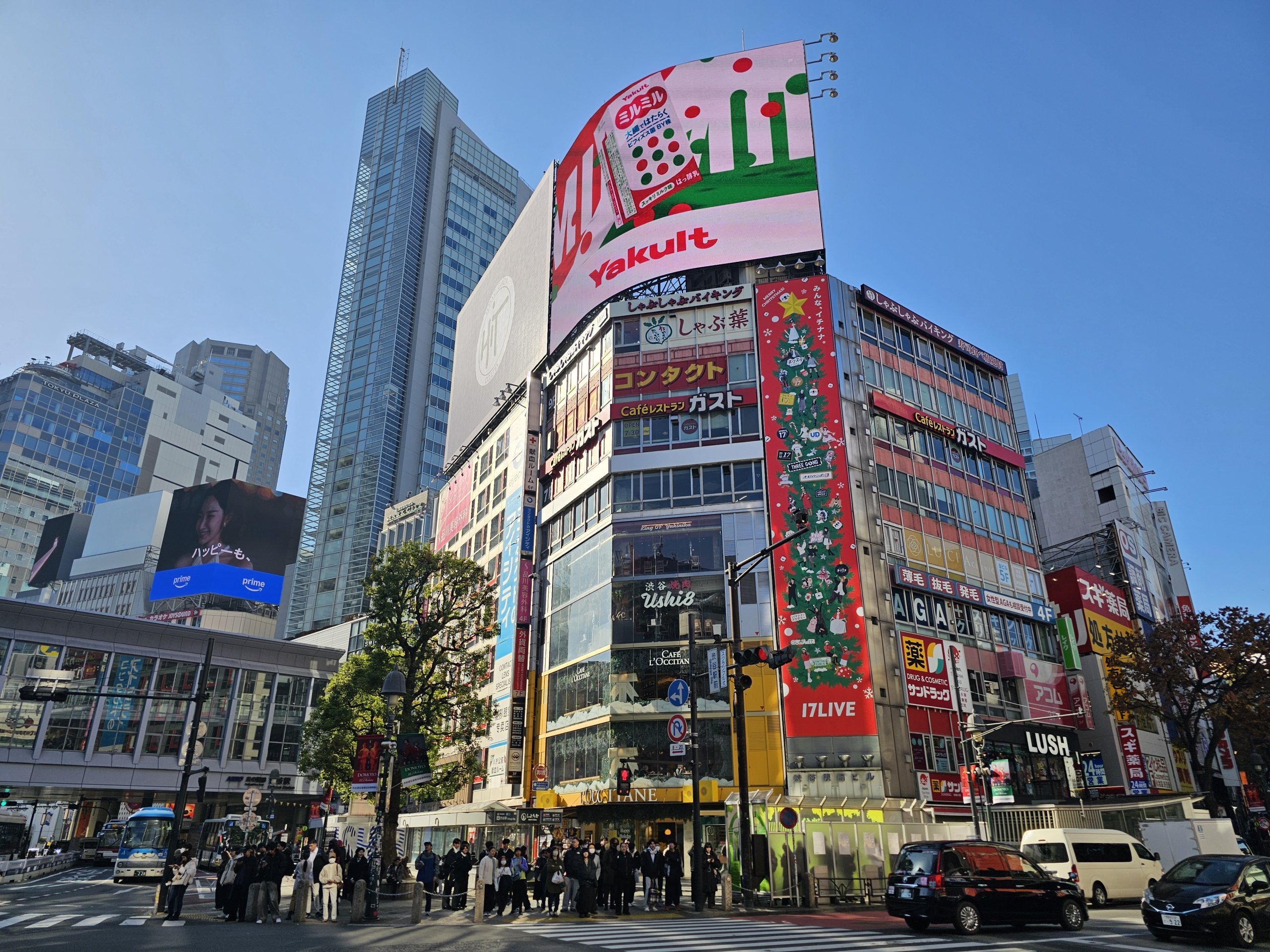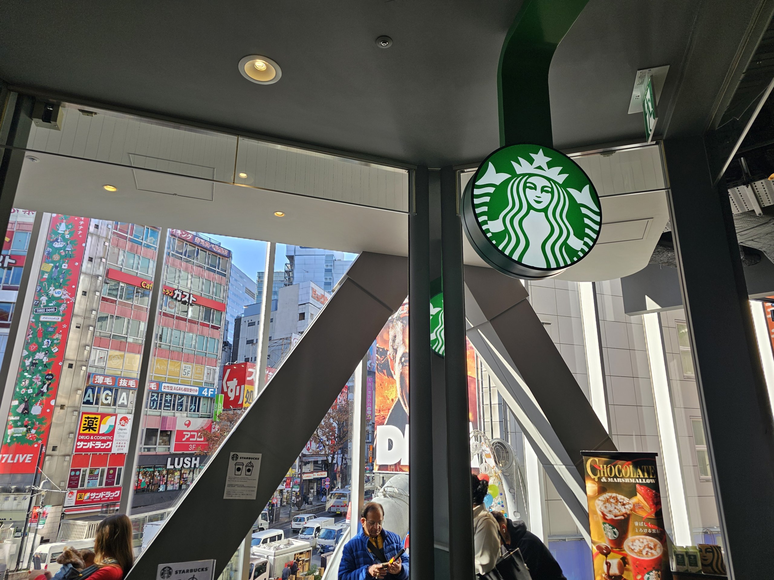 Här har man en fin utsikt över Shibuya-korsningen, dock inte lika perfekt som från Share Lounge, eftersom den skyms något av takkonstruktionen.