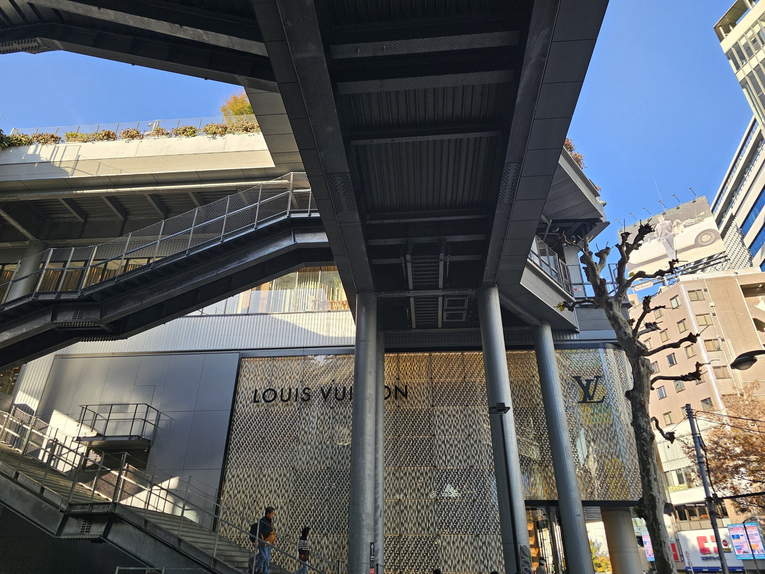 Miyashita Park påminner lite om High Line i New York - det är en artificiellt skapad smal remsa av grönområden ovanpå varuhusbyggnader som ser industriella ut. På ena sidan ligger spåren för den livligt trafikerade YR Yamamote-järnvägslinjen, på den andra sidan ligger spåren för Saikyo-linjen.