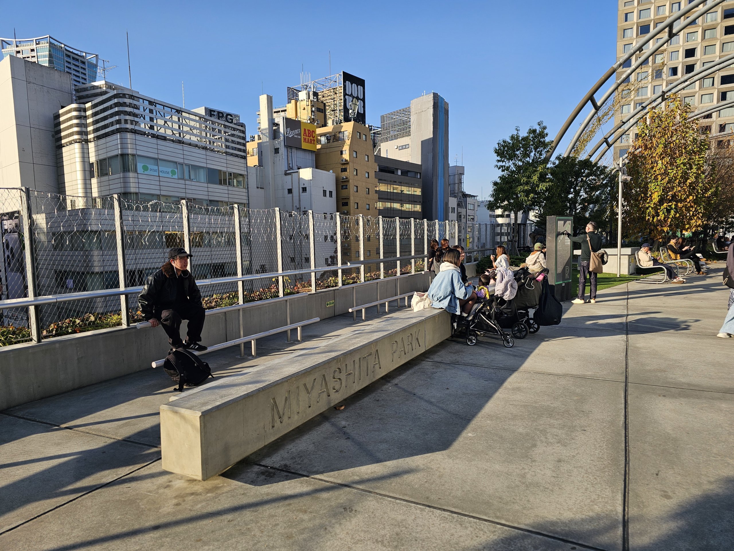 Miyashita Park är en trevlig plats för en kort vila - du kan besöka den gratis 24/7.