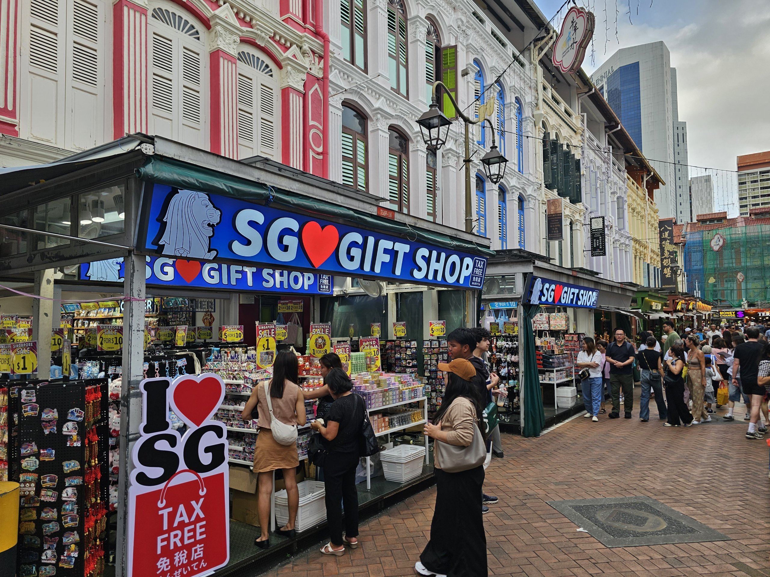 Chinatown är också ett unikt område med låga hus som ligger mitt bland moderna skyskrapor. Det sticker ut särskilt när man ser det från luften eller från utsiktsplatsen Pinnacle@Duxton.
