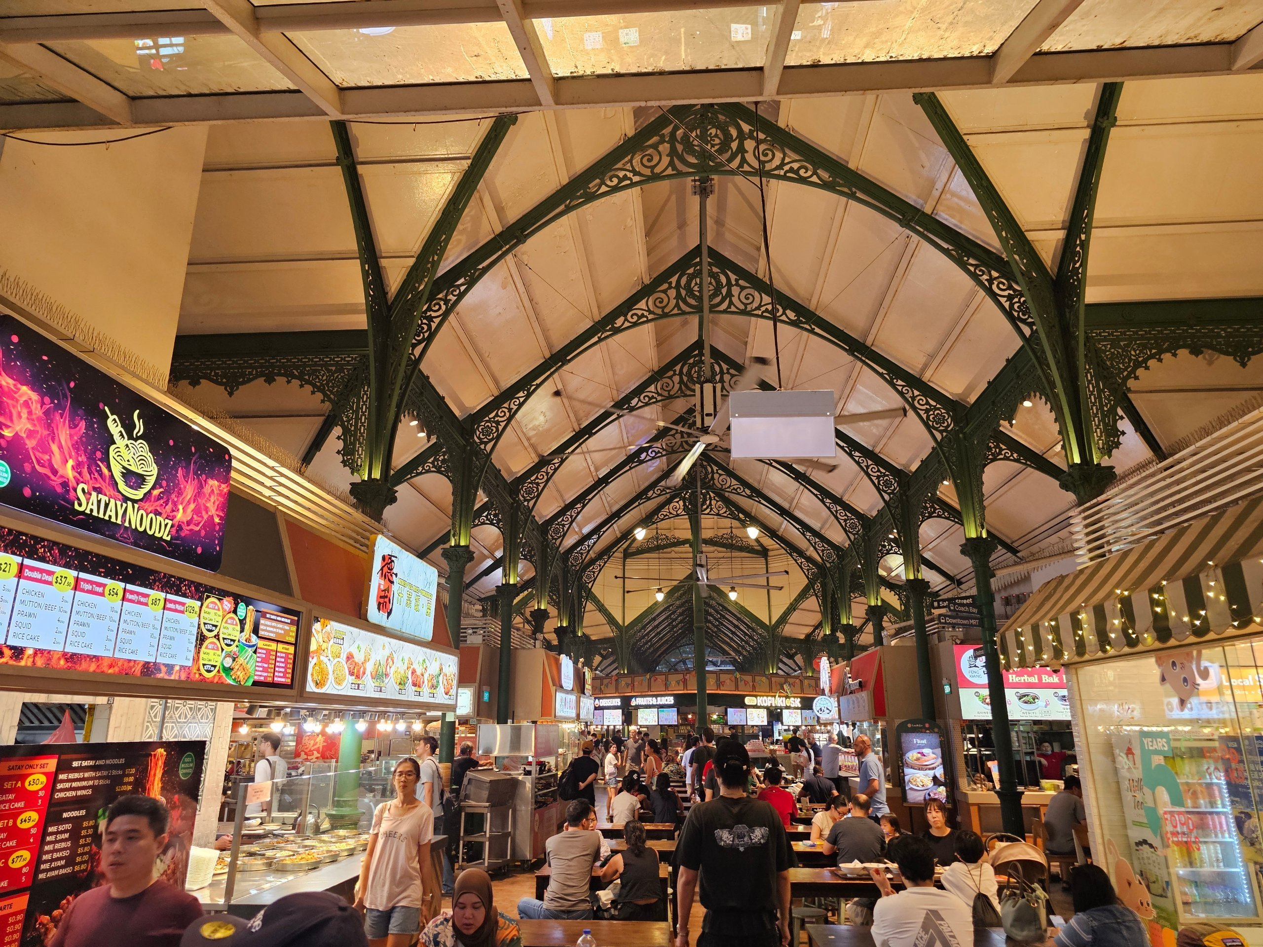 Det är den här arkitekturen som gör Lau Pa Sat till ett av de mest fotogeniska hökarcentrumen i Singapore.