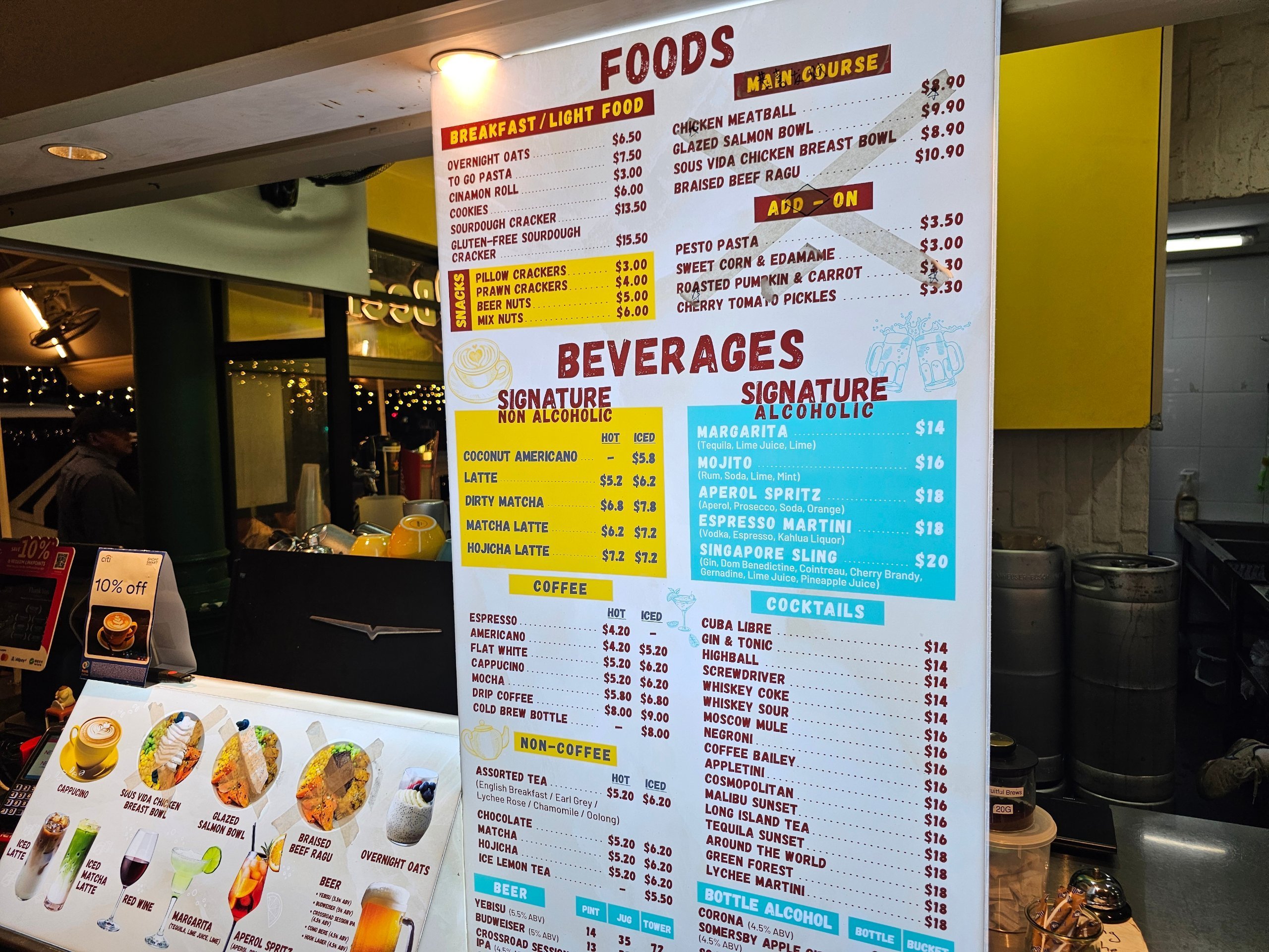 Priserna ligger vanligtvis mellan 5 och 10 sgd för en huvudmåltid.