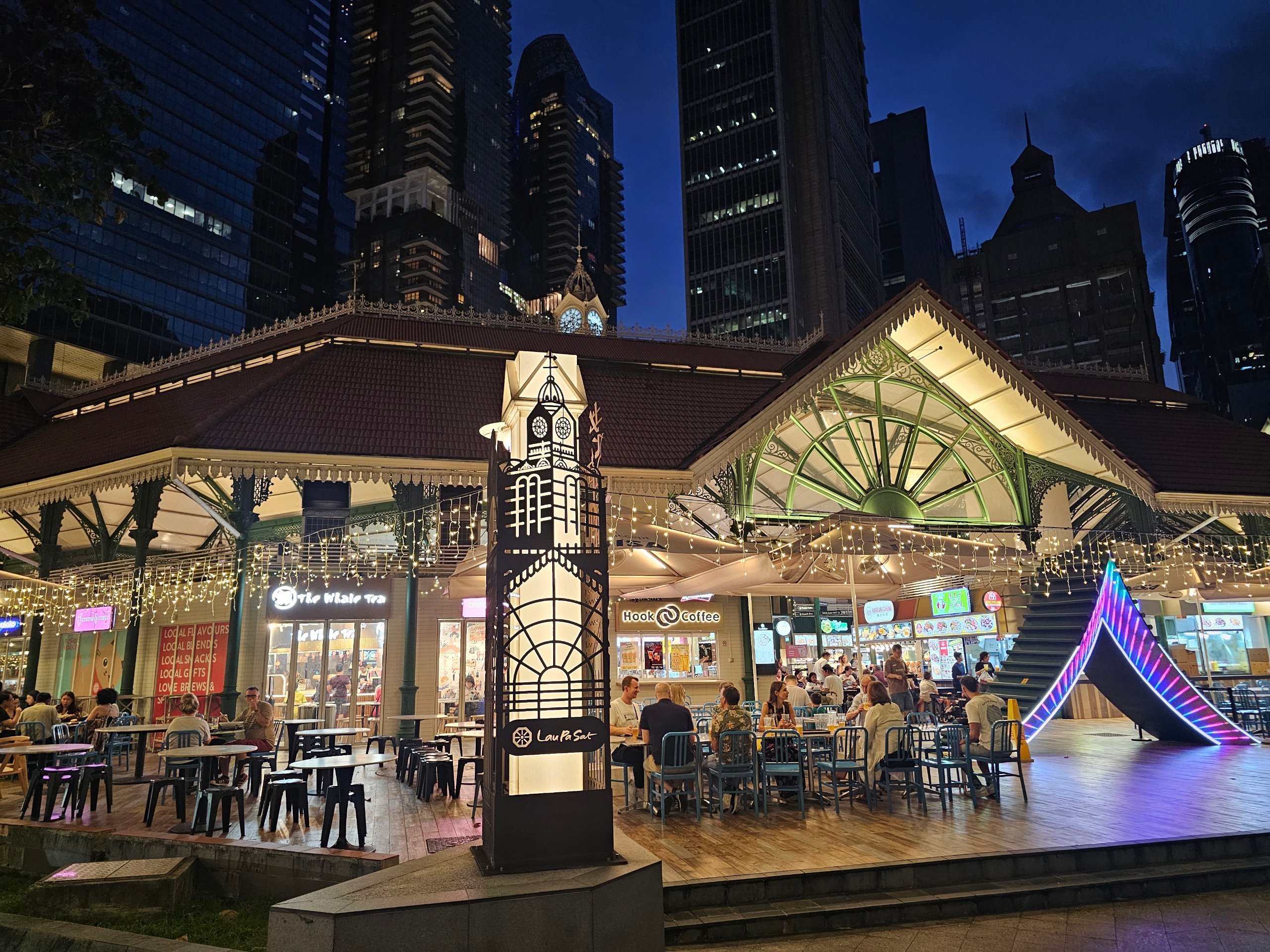 Om du planerar en kvällspromenad runt Merlion Park eller längs Marina Bay är Lau Pa Sat det perfekta middagsstoppet.