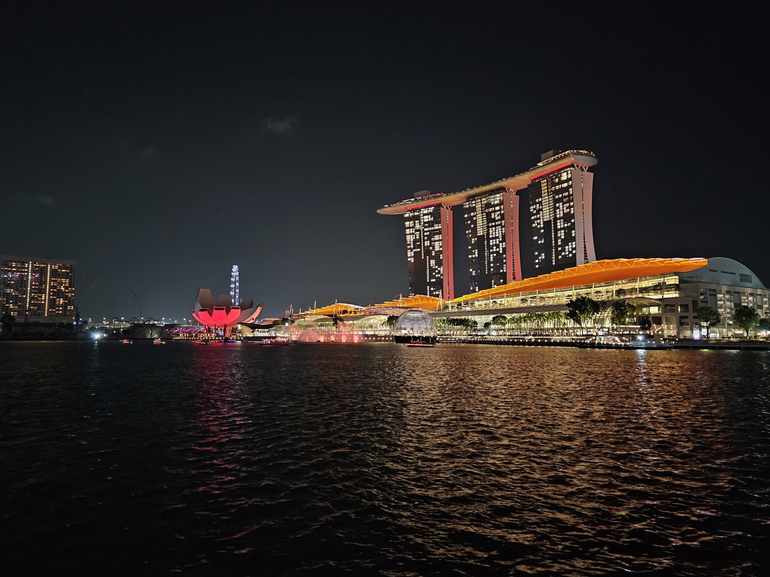 Vi ville inte vara direkt under Marina Bay Sands - du har den närmaste showen, men jag tycker att det är mer av en nackdel - du ser inte det övergripande panoramat.
