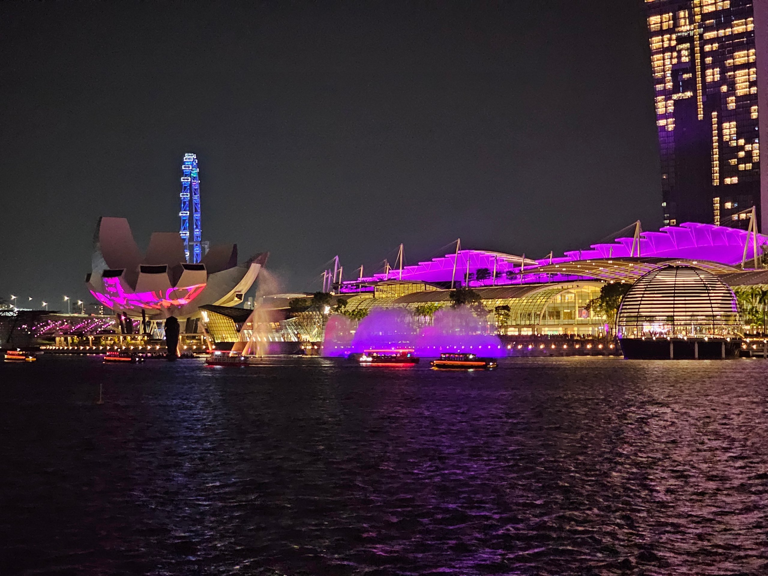- men vi tittade på Spectra-showen från sidan av parken nära Fullerton Bay