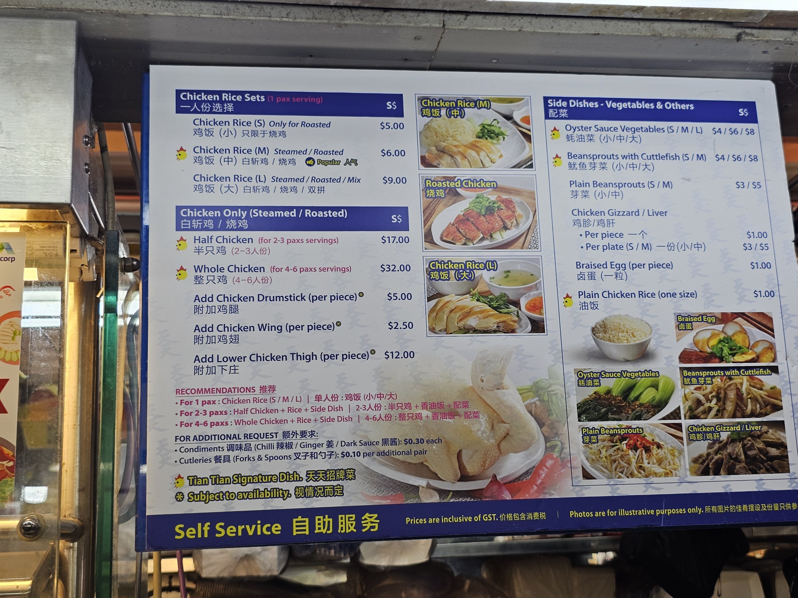 Det mest kända av dessa är Tian Tian Hainanese Chicken Rice, som är ett av de mest populära stånden i hela Singapore. Det är här du kan prova det berömda hainanesiska kycklingriset, en maträtt som ofta kallas en av Singapores nationalrätter.