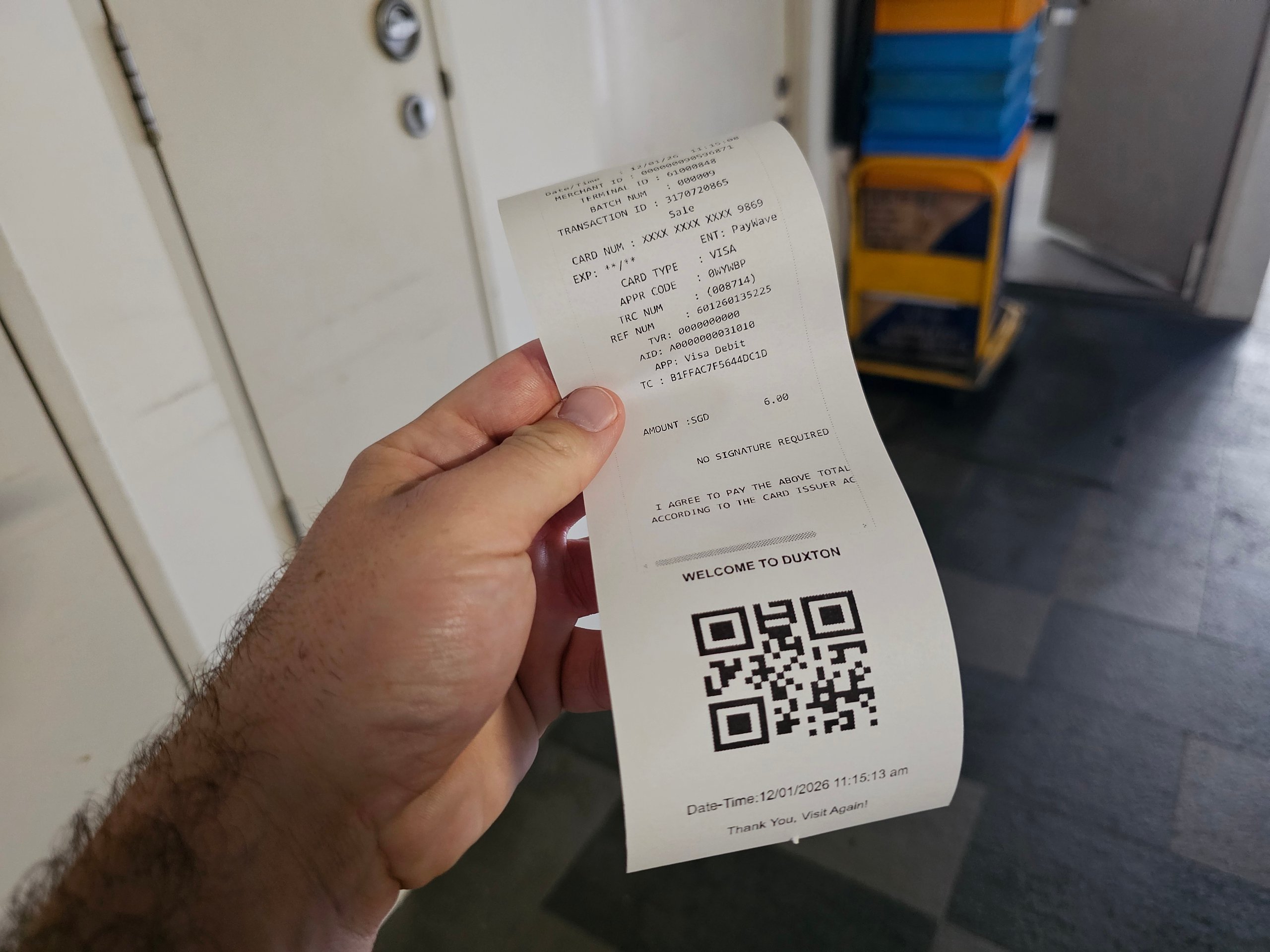 Du kliver på hissen, åker upp till 50:e våningen och skannar QR-koden vid vändkorset.