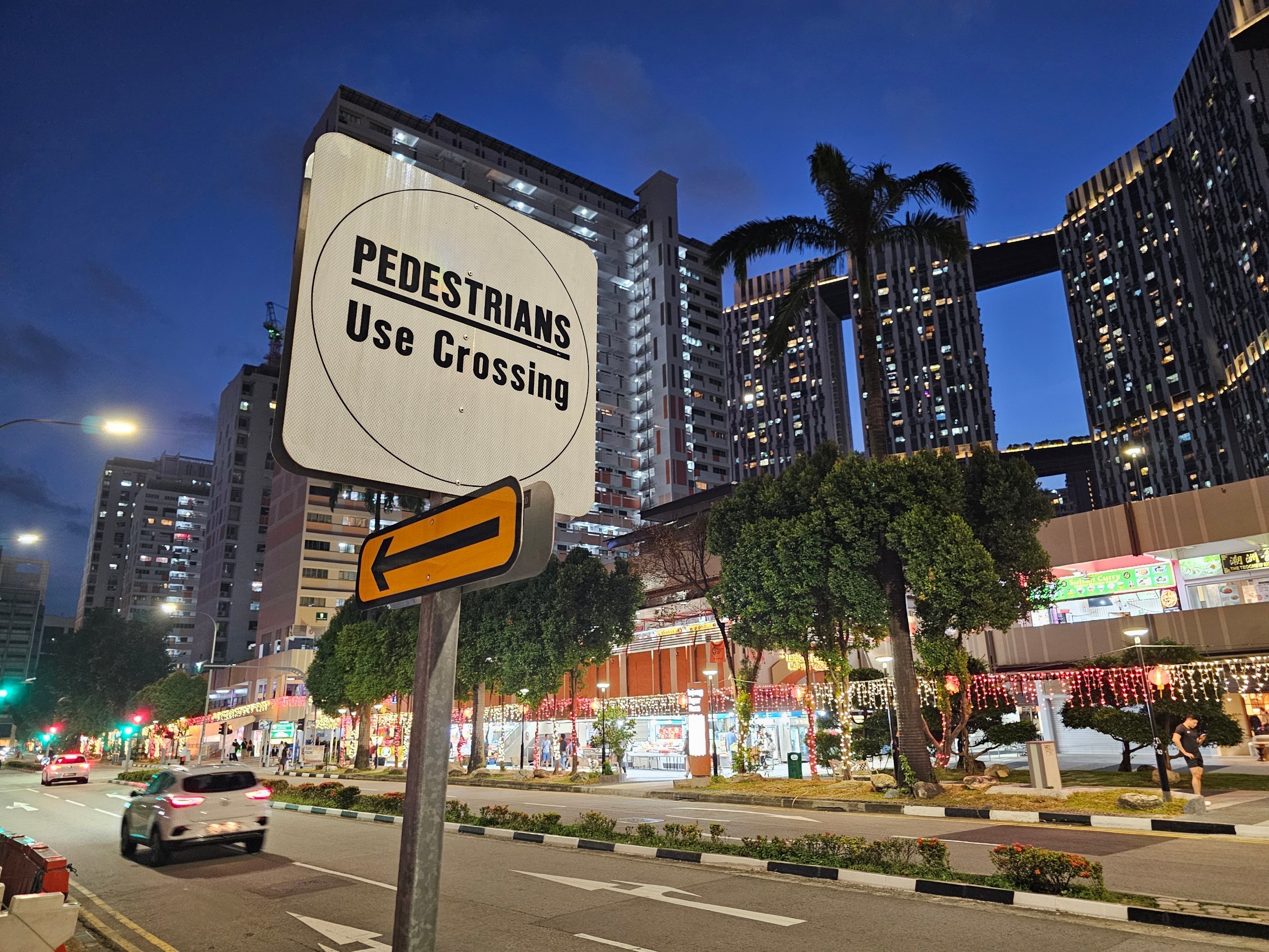 ❗ I Singapore är det olagligt att korsa gatan utanför övergångsställen under hot om stora böter på upp till hundratals Singapore-dollar. I verkligheten såg vi dock ett stort antal fotgängare som korsade gatorna utanför trafikljusen.