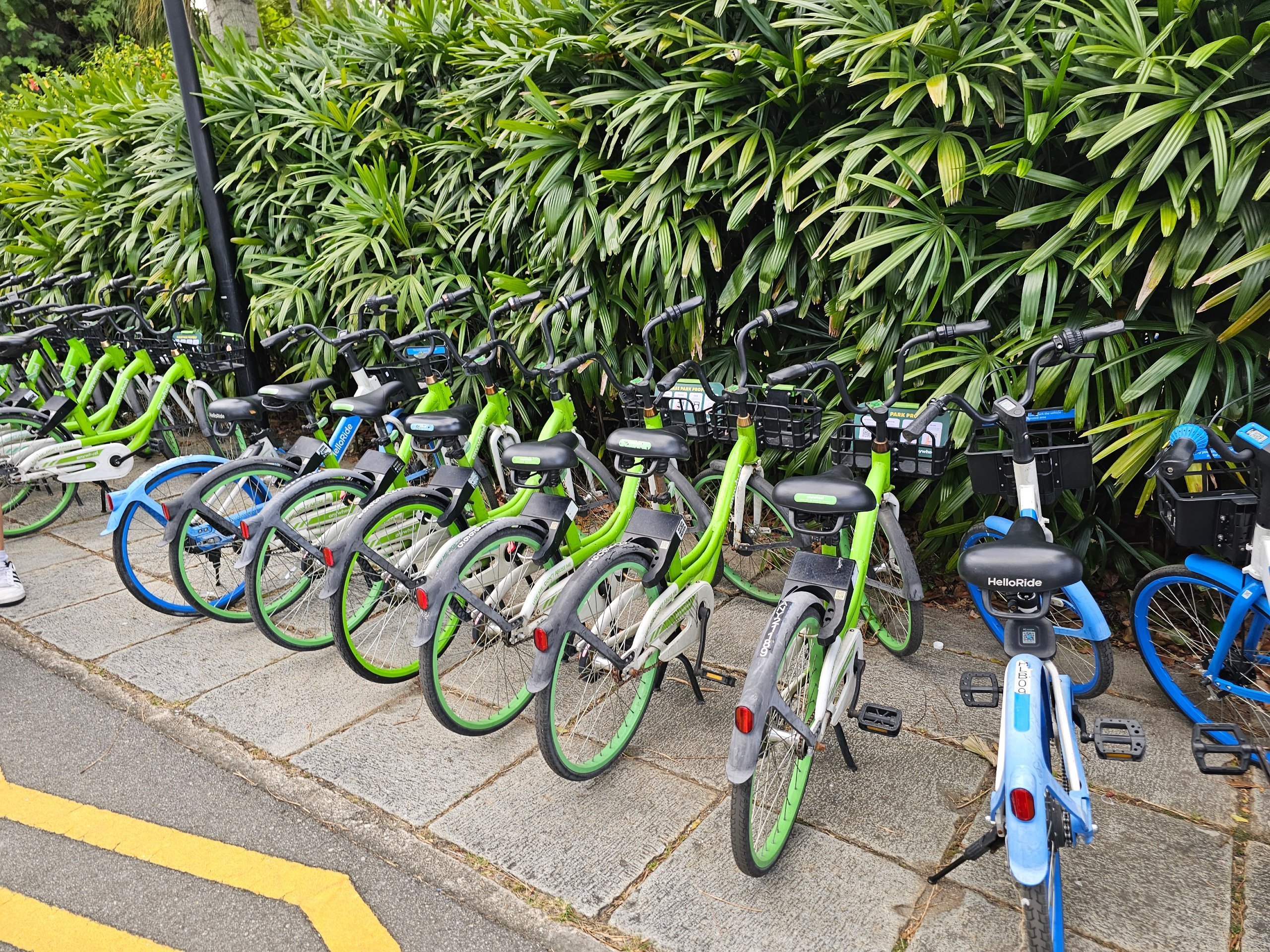 Det finns delade cyklar i Singapore, men de är inte lika utbredda som i Europa.