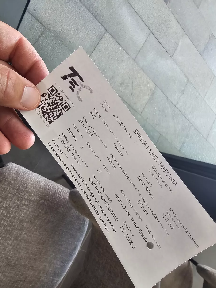 Biljetter till moderna SGR-tåg kan också köpas via tredje part, till exempel 12go.asia, som vi gärna använder när vi reser i Asien. Det fungerade dock inte alls bra i Tanzania. Den här webbplatsen ordnar tågbiljetter genom en lokal mellanhand, men även efter flera uppmaningar skickade han inte biljetten och jag var tvungen att köpa en ny biljett på stationen.
