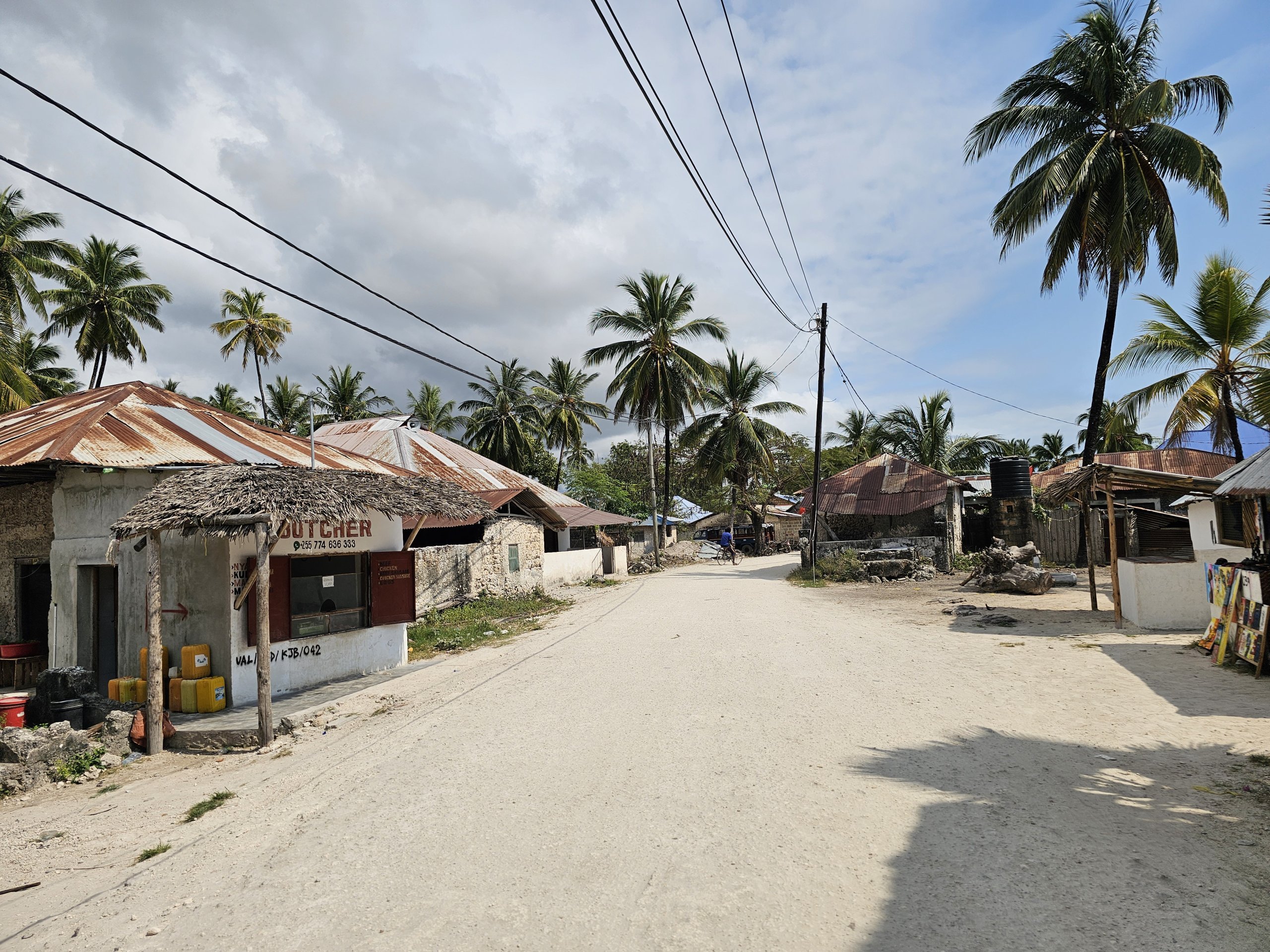 Bortsett från hotellremsan precis vid stranden är Jambiani en mycket fattig och lokal by, med en grusväg som löper genom den.
