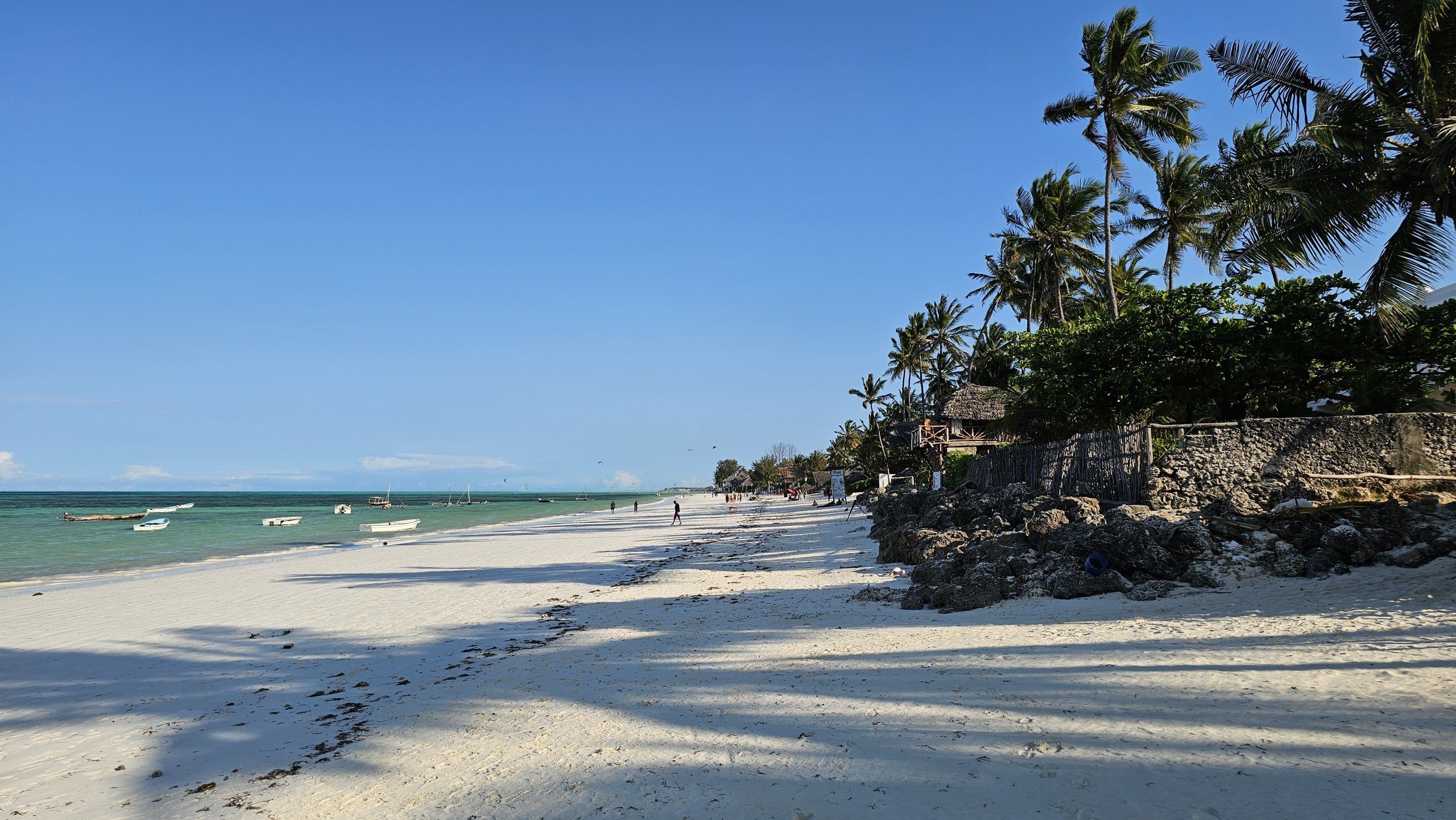 Den flera kilometer långa strandremsan är en av de mest populära semesterorterna på Zanzibar.