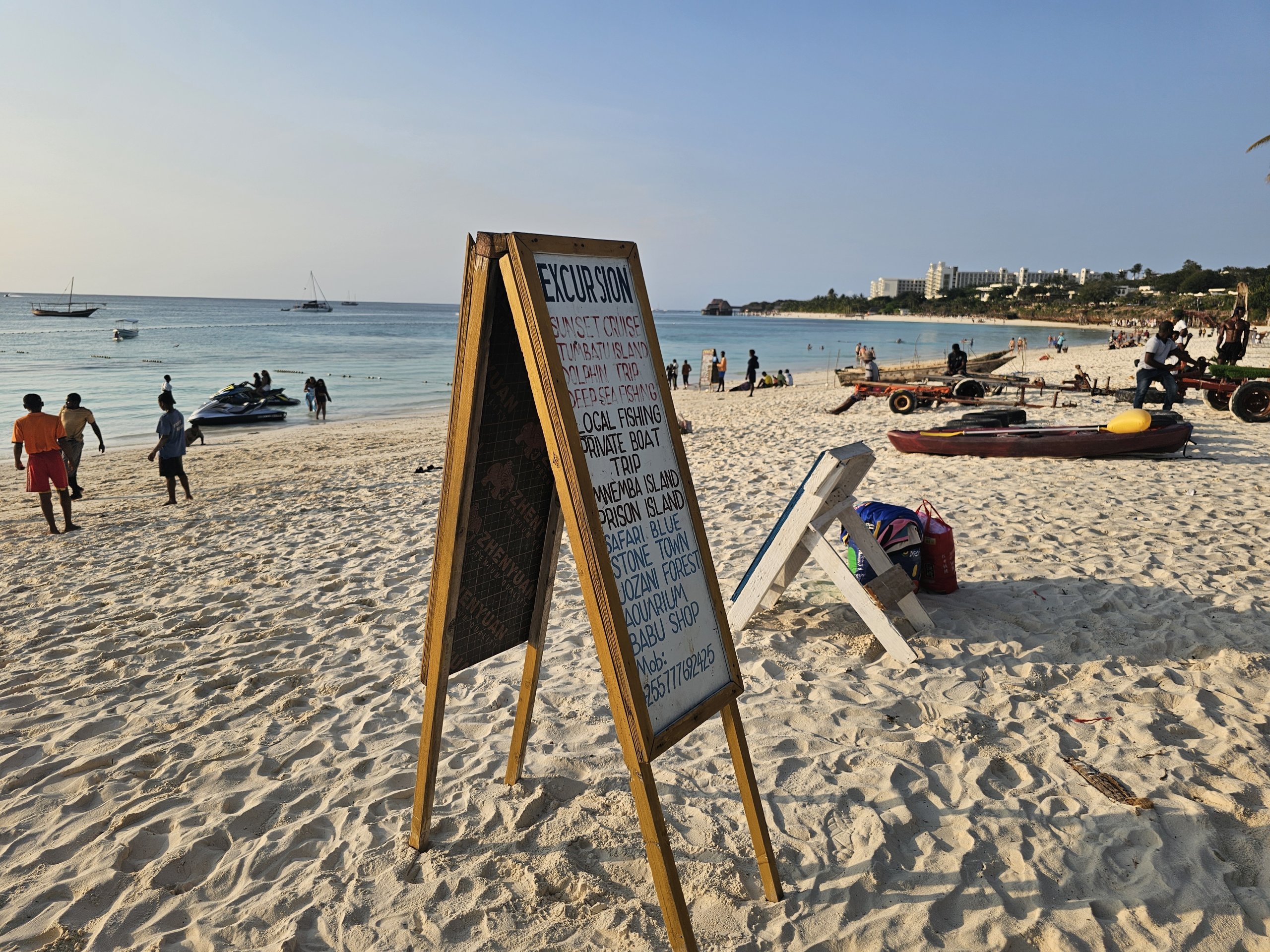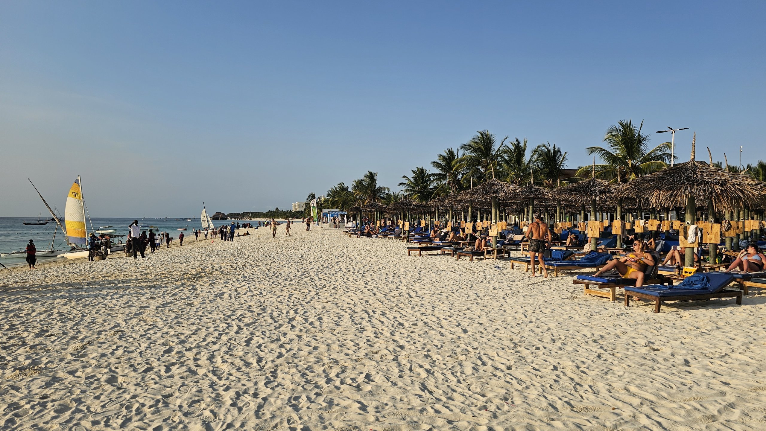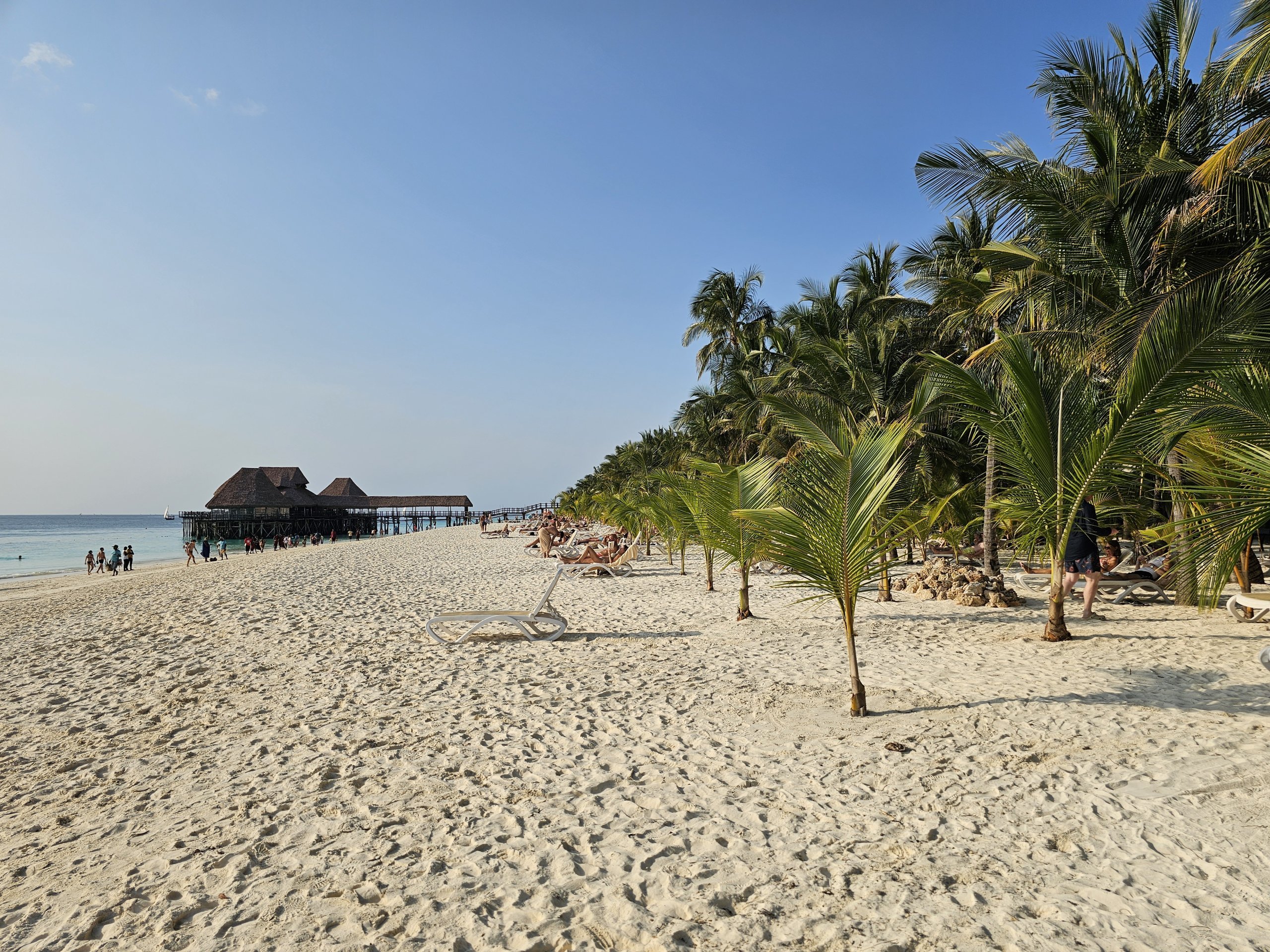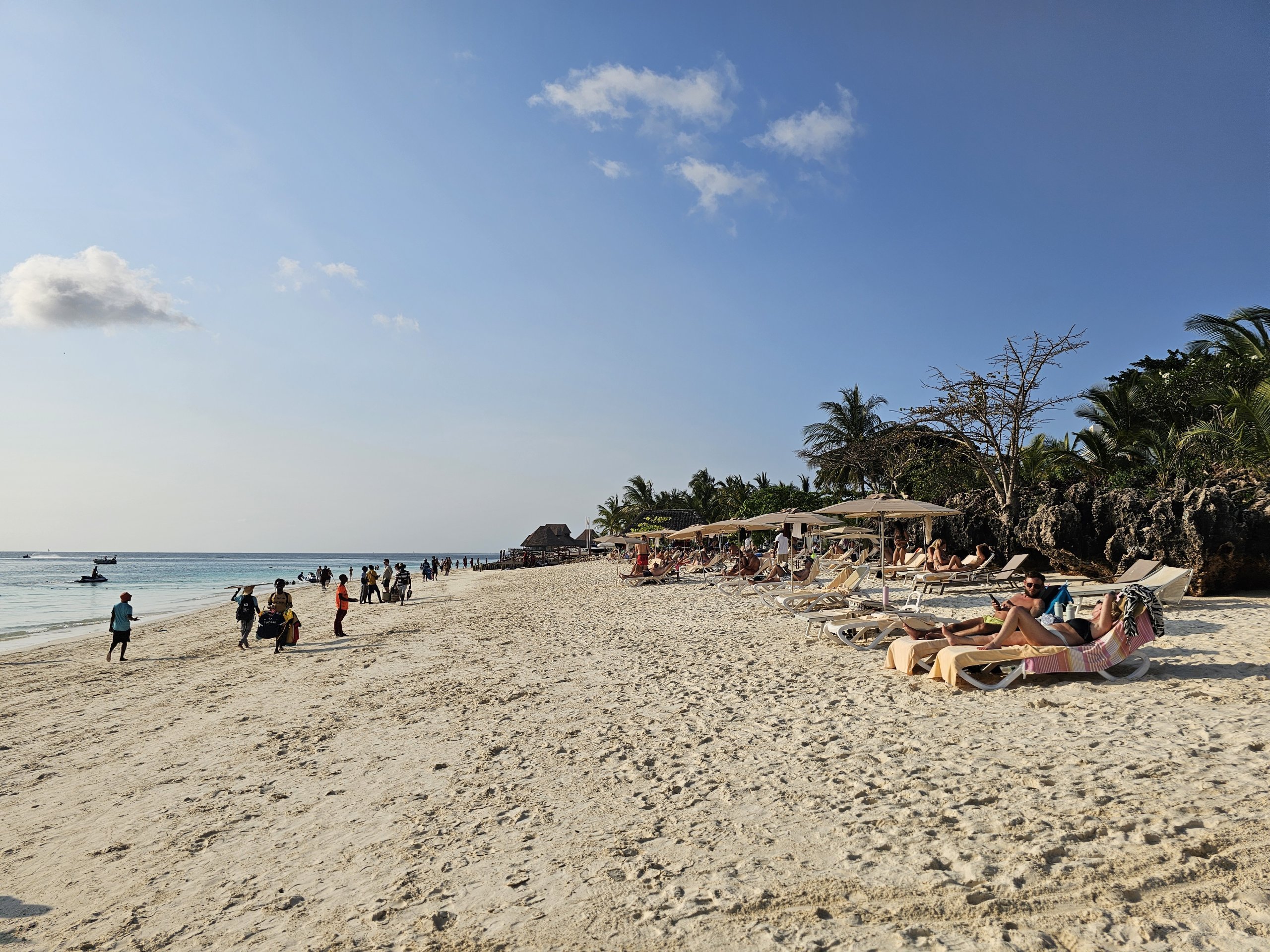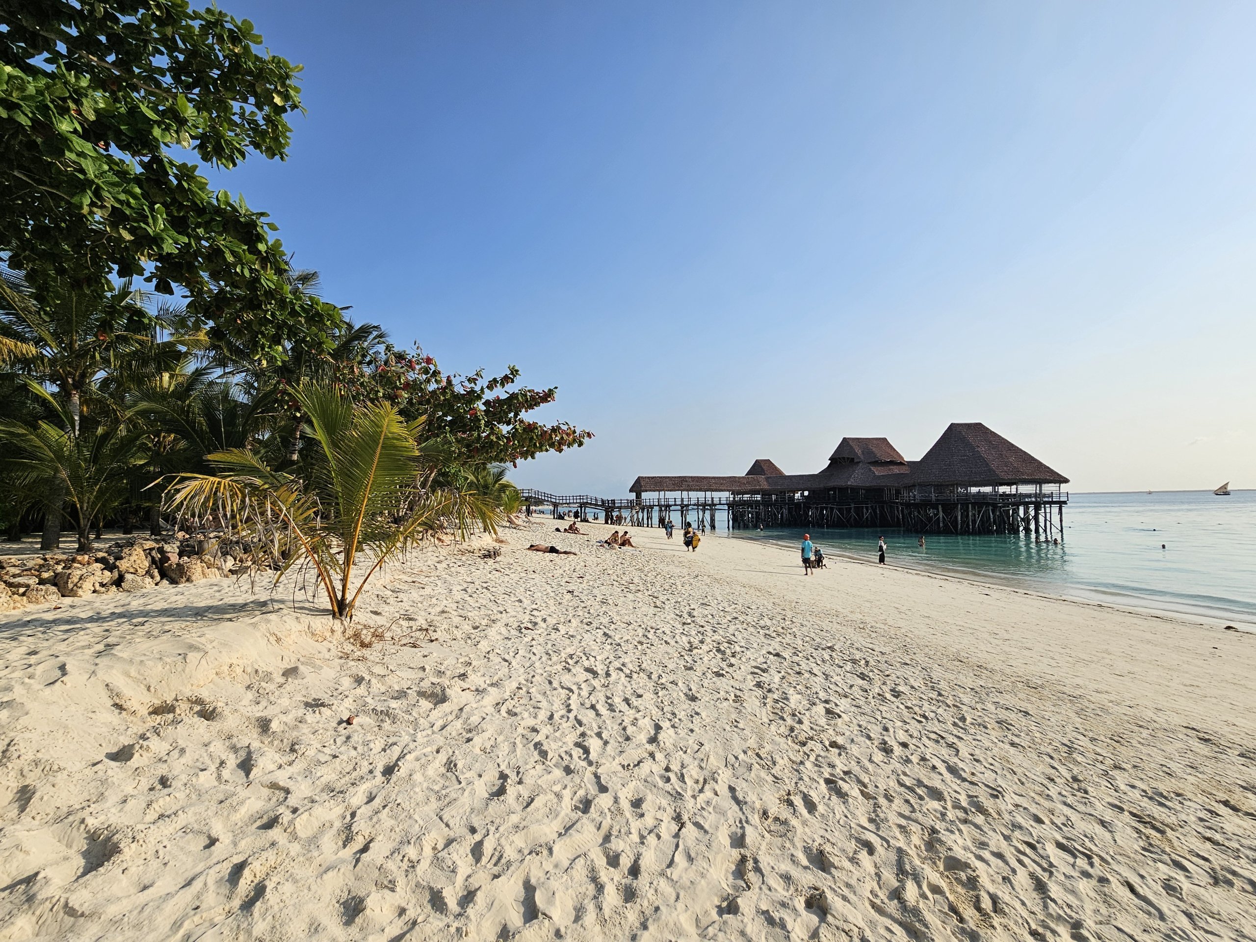 Den lokala stranden är definitivt den finaste jag har besökt på Zanzibar och du kan simma i havet även under lågvatten, till skillnad från stränderna på östkusten.