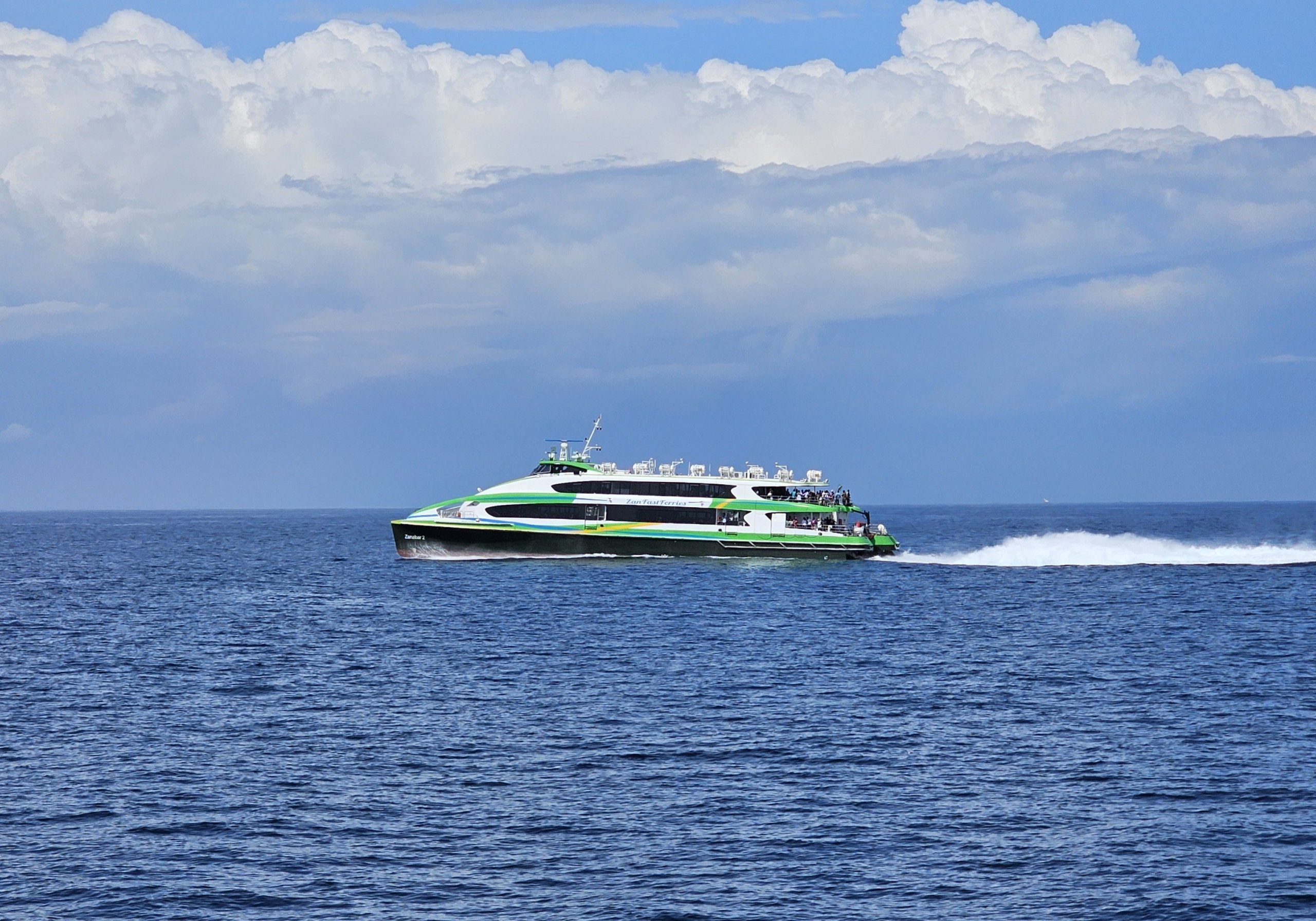 De snabba katamaraner som seglar mellan Zanzibar och fastlandet under dagen är moderna, rena och mycket säkra.