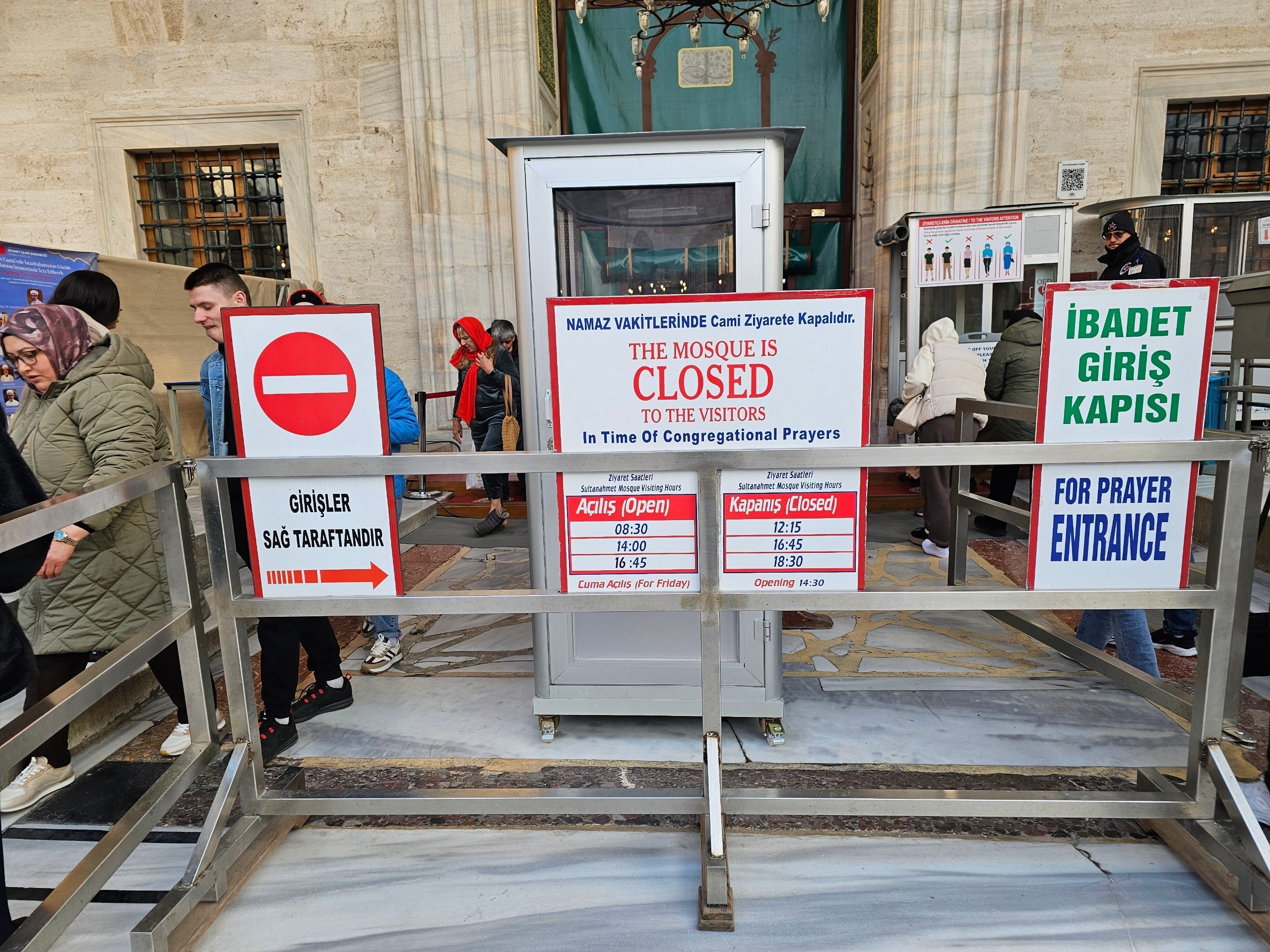 Moskén är alltid stängd för alla icke-muslimer under och en timme före bönen.
