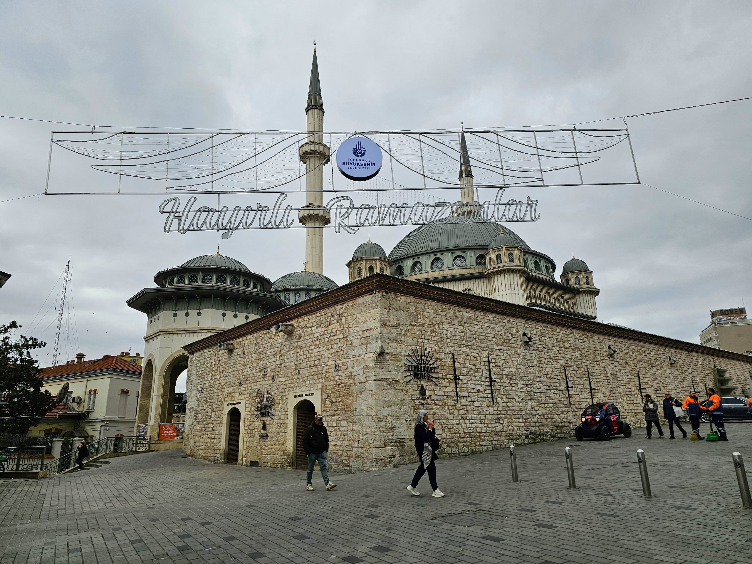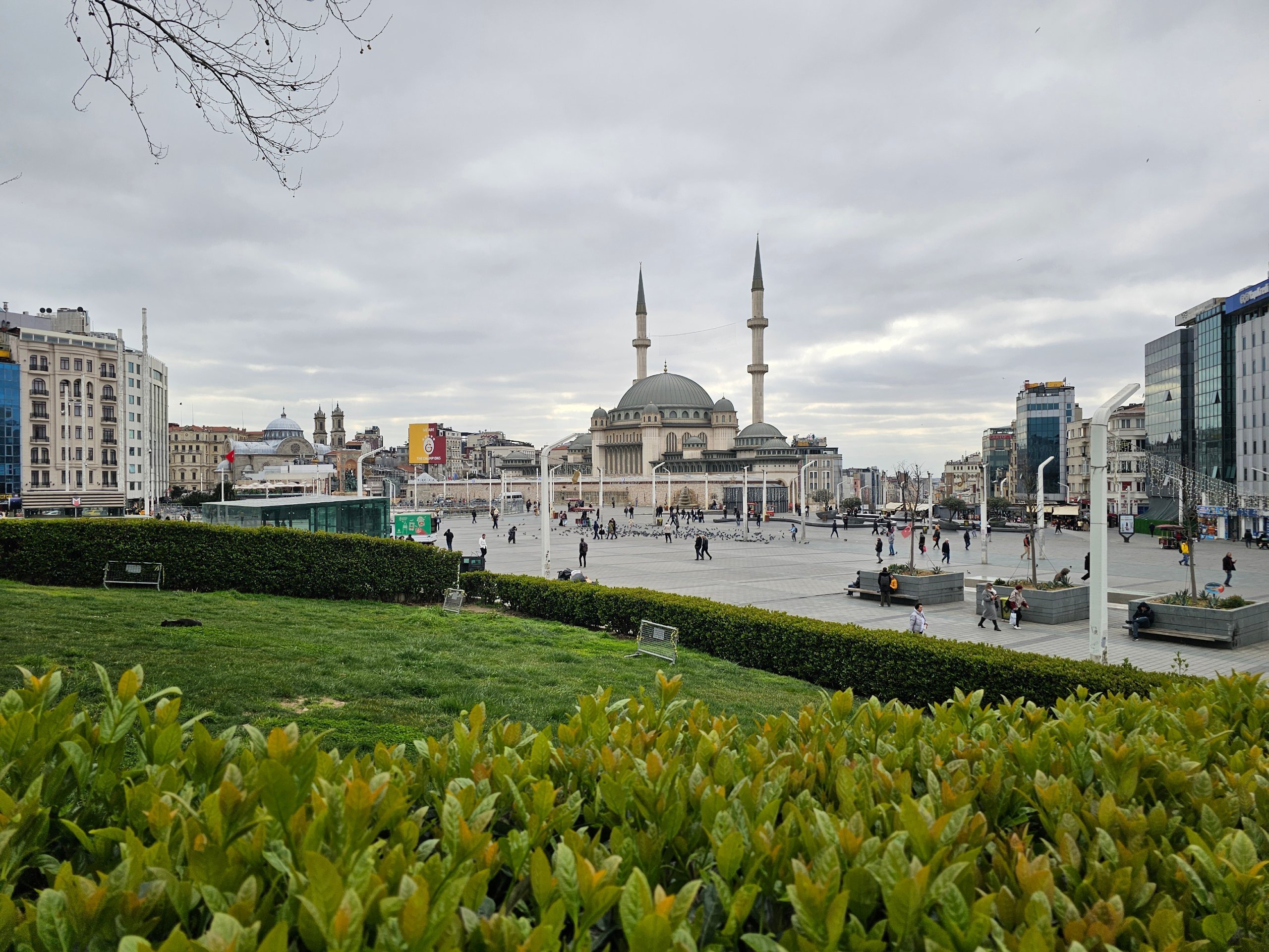 Det finns en fin park i mitten av torget och Taksim-moskén ligger vid den södra kanten.